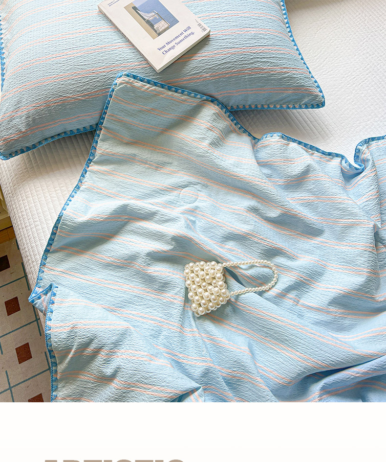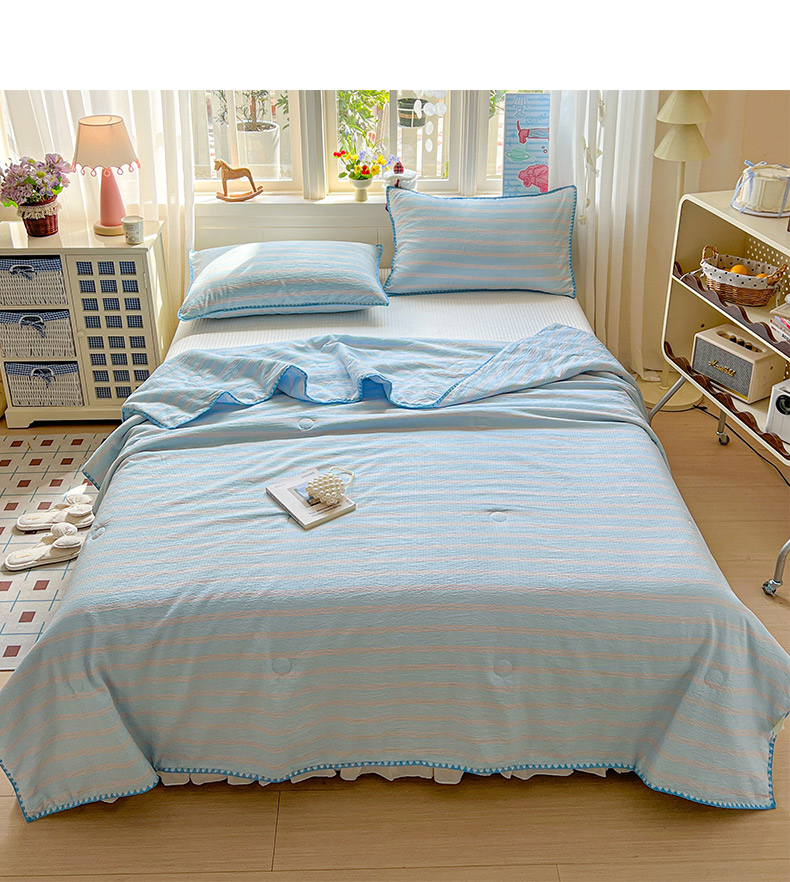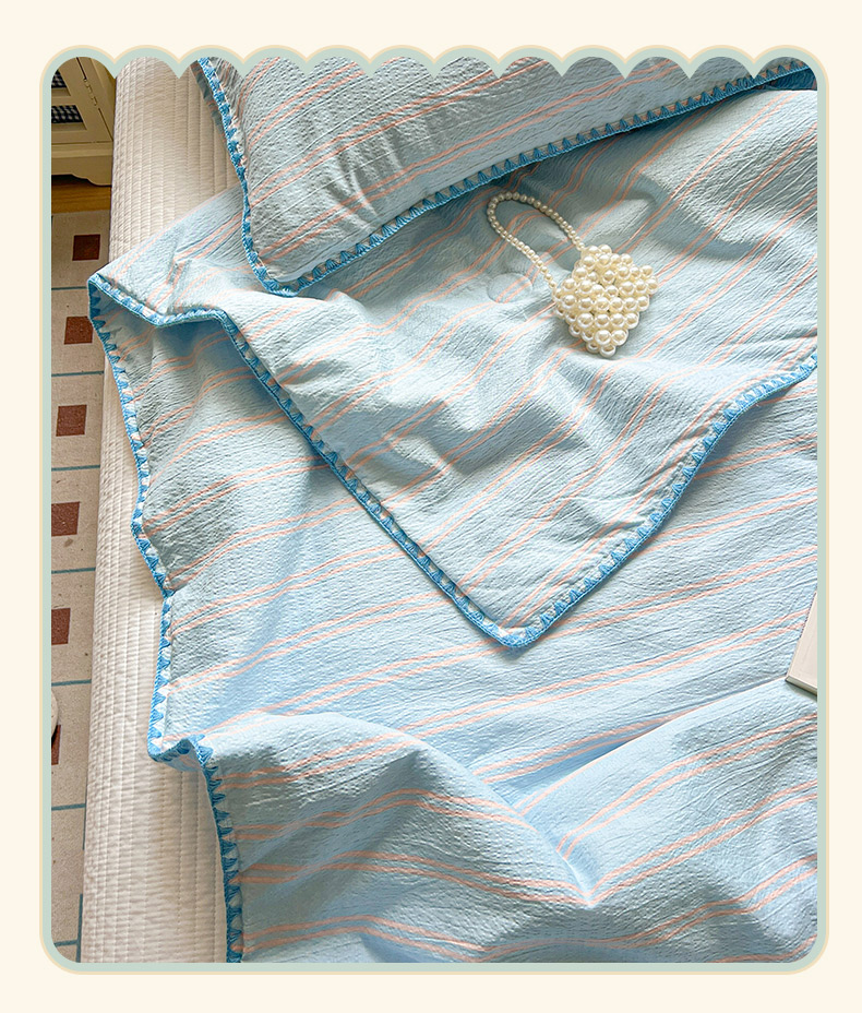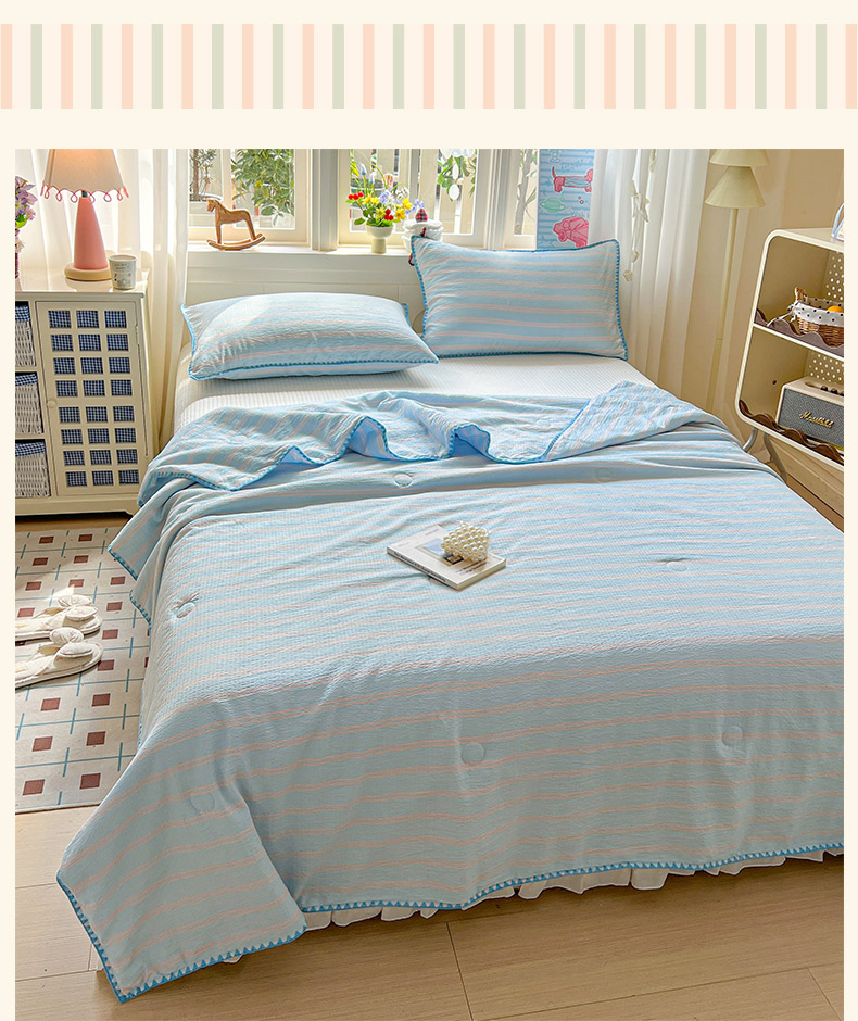 商品名称:鑫利来家纺 2026新款日系多巴胺皱皱纱贝壳绣夏被夏凉被空调被 春染-清蓝