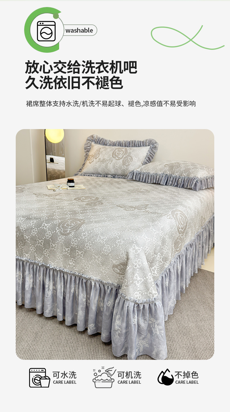 (总)锦逸家居 2026新款床裙款真PE冰丝凉席,花间密语,花香丽影-卡其,花香丽影-浅灰,欧陆风情-灰蓝,欧陆风情-卡其