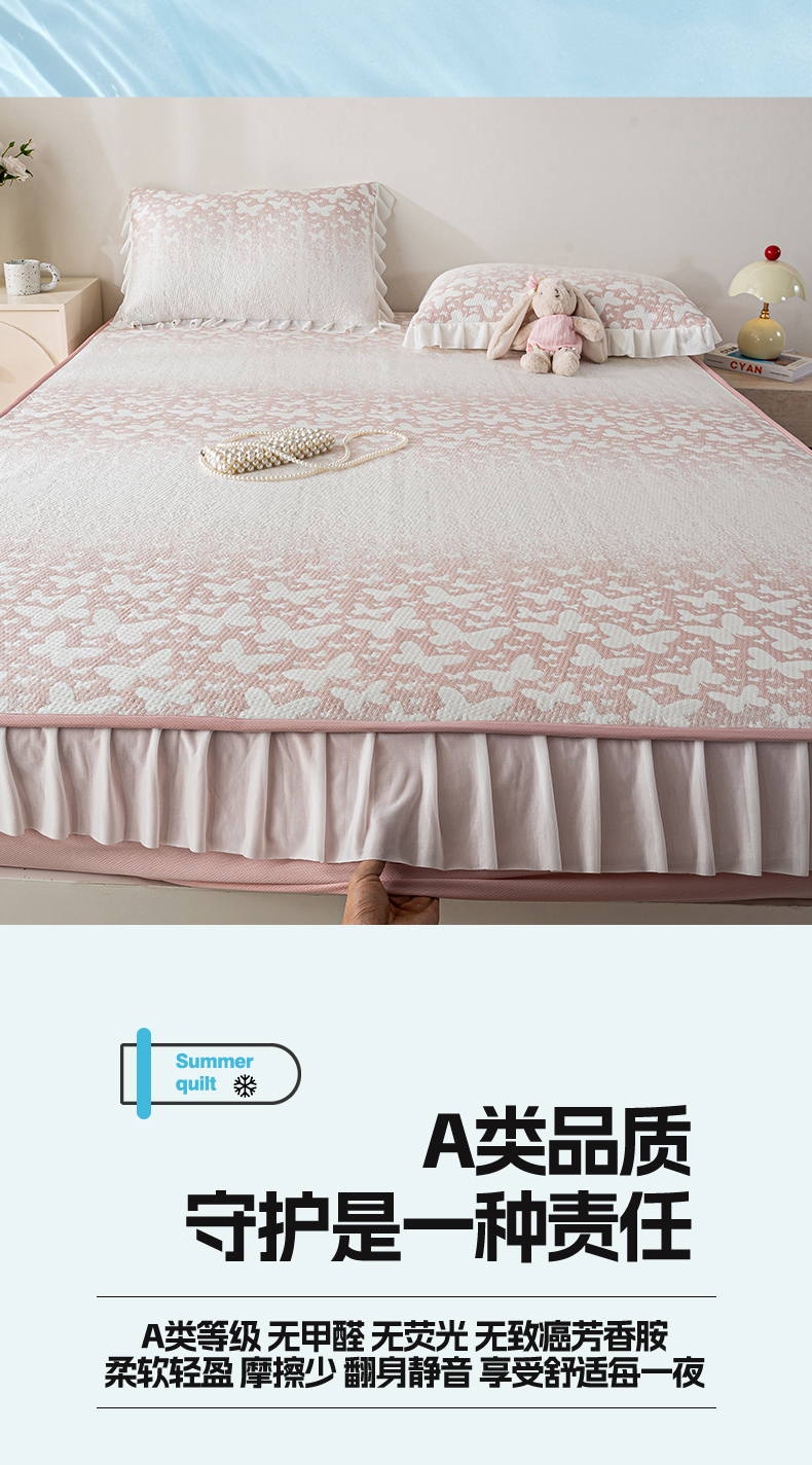 商品名称:(总)伊人坊 2026新款A类550克凉感提花值过0.21冰豆豆家用凉席子三件套夏季-花边床笠款