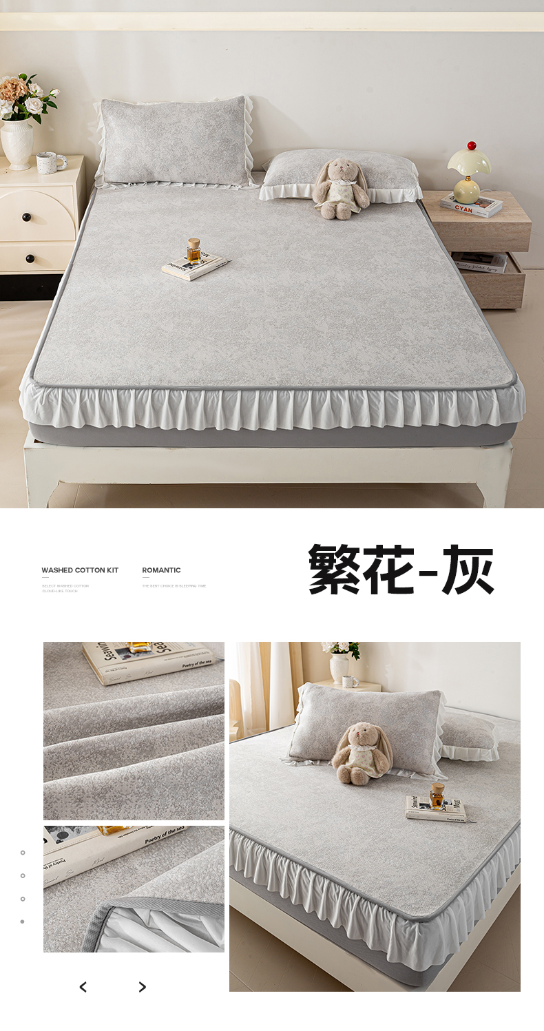 (总)伊人坊 2025新款A类水洗棉六面全包棉花夹棉床笠,爱心粉,五星灰,五星咖色,五星粉,五星米白,爱心灰,爱心米白,爱心咖色