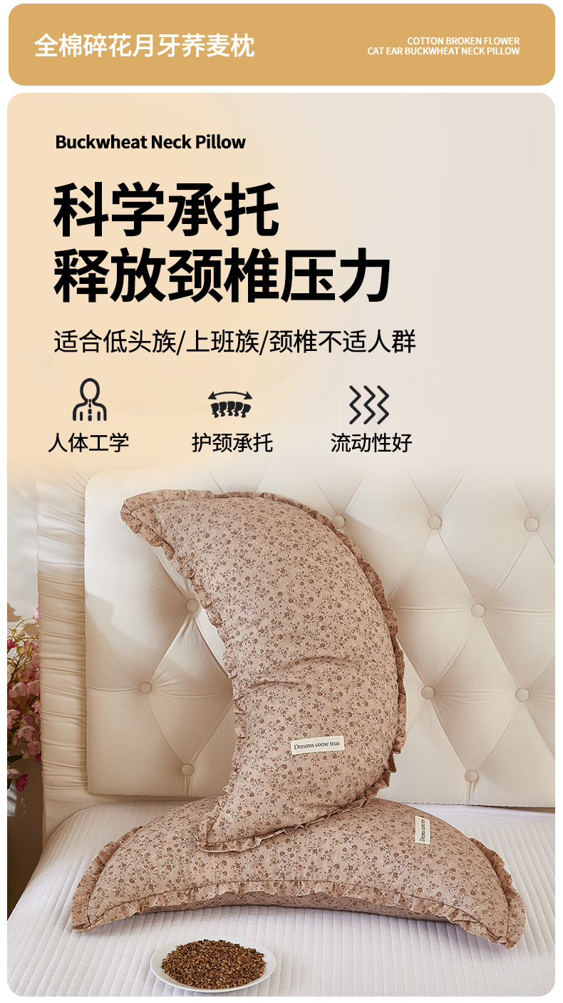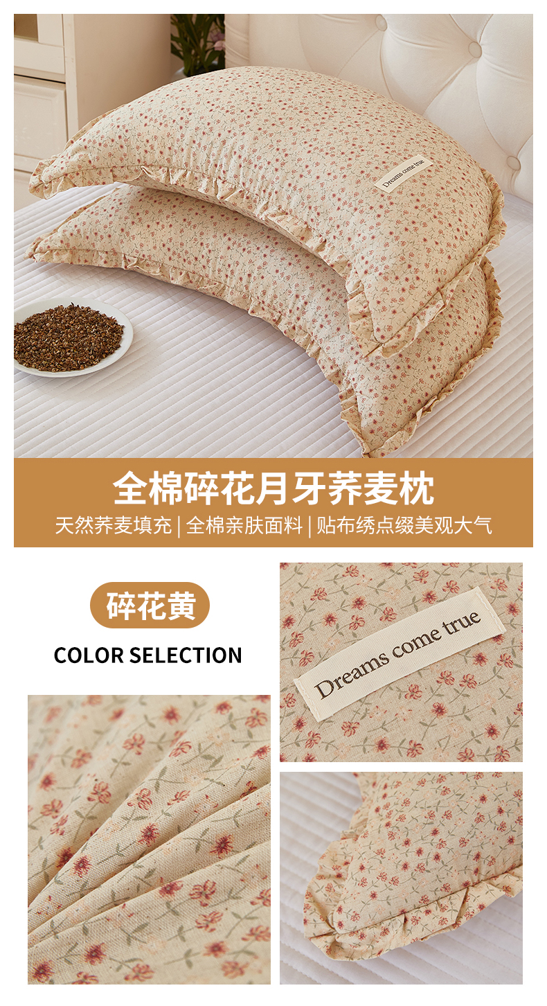 (总)梦叶草 2026新款全棉碎花月牙花边荞麦枕,全棉碎花月牙荞麦枕-碎花粉,全棉碎花月牙荞麦枕-碎花黄,全棉碎花月牙荞麦枕-碎花咖,全棉碎花月牙荞麦枕-碎花蓝,全棉碎花月牙荞麦枕-碎花紫