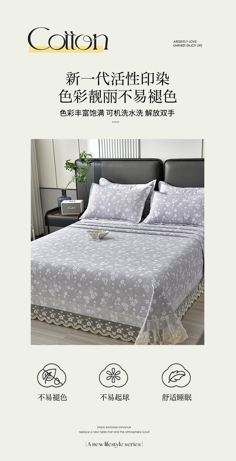 (总)星窝家纺 2025新款水洗棉花边床裙式多功能床盖三件套,经典豆绿,经典粉色,经典灰色,经典橘色,经典蓝色,经典奶白,经典紫色