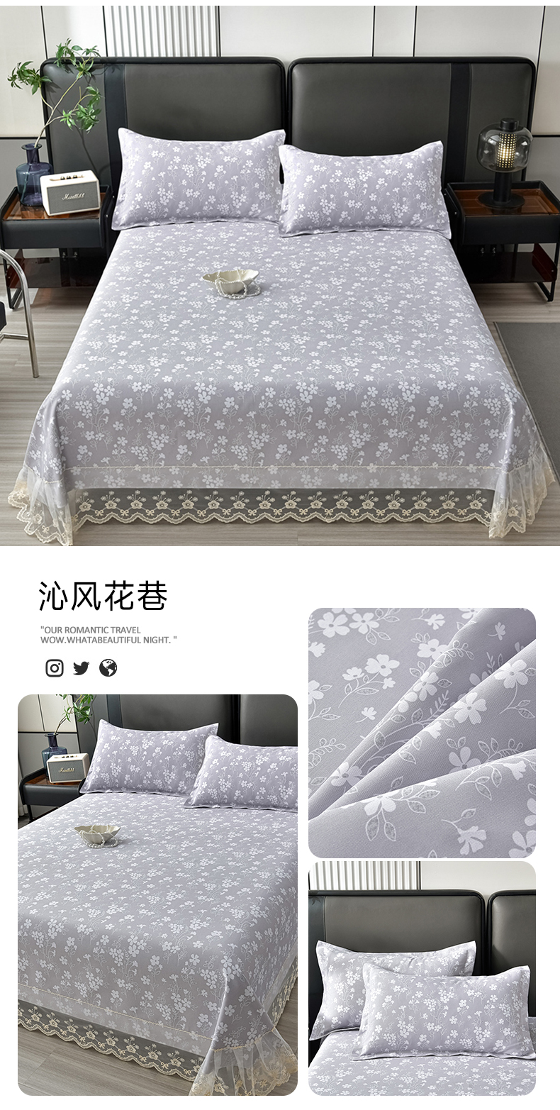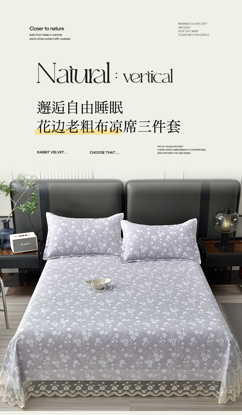 商品名称:星窝家纺 2026新款花边老粗布凉席三件套 沁风花巷