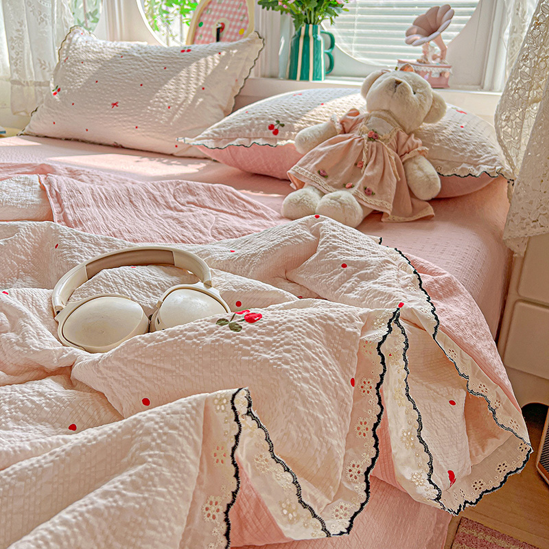 (总)一比一家纺 2026新款法式花边泡芙纱夏被四件套,春日小花,春日小兔,蛋糕熊,道格先生,费尔岛,红波点,红樱桃,蝴蝶谷,花枝兔,欢乐时光,浪漫满屋,马到成功,萌趣熊,梦宝贝 - 红,梦宝贝 - 黄,奶霜啵啵,南瓜象,青禾,甜心KT,晚安星人,小矮人,小红马,幸运汪,熊贝贝,悦己,紫花兔兔,青色樱桃,樱桃波点,甜樱喵,梦幻小马,甜心咖,柔诗意,青梅酱,黛蝶,云朵泡芙,萌趣熊咖,软萌南瓜