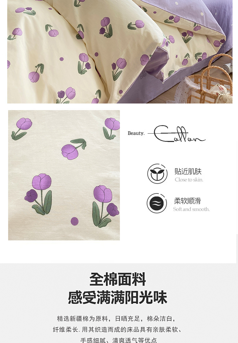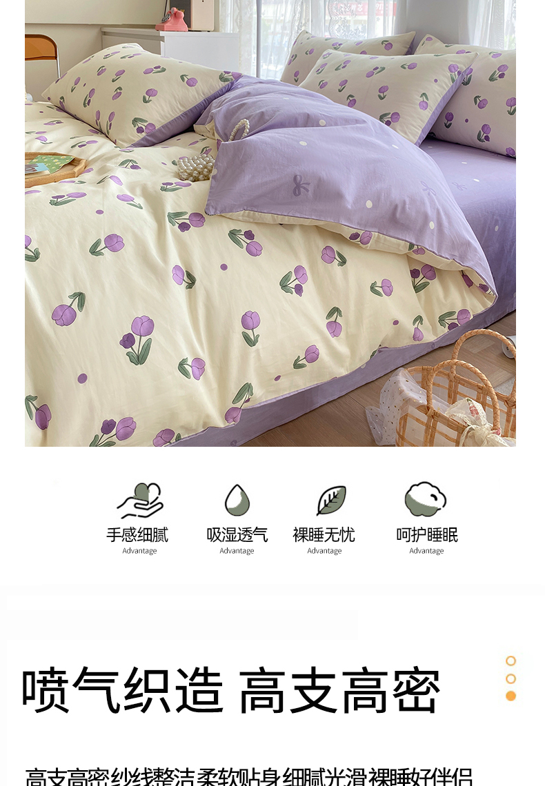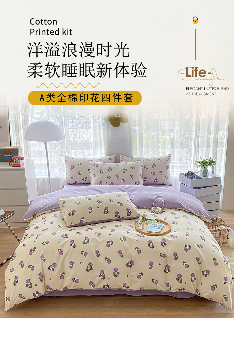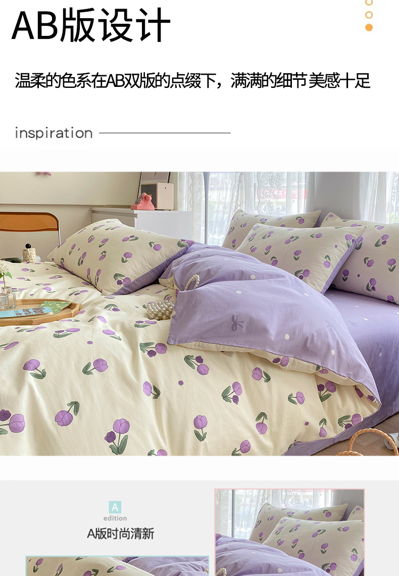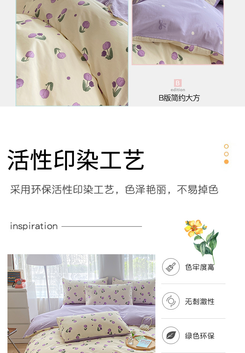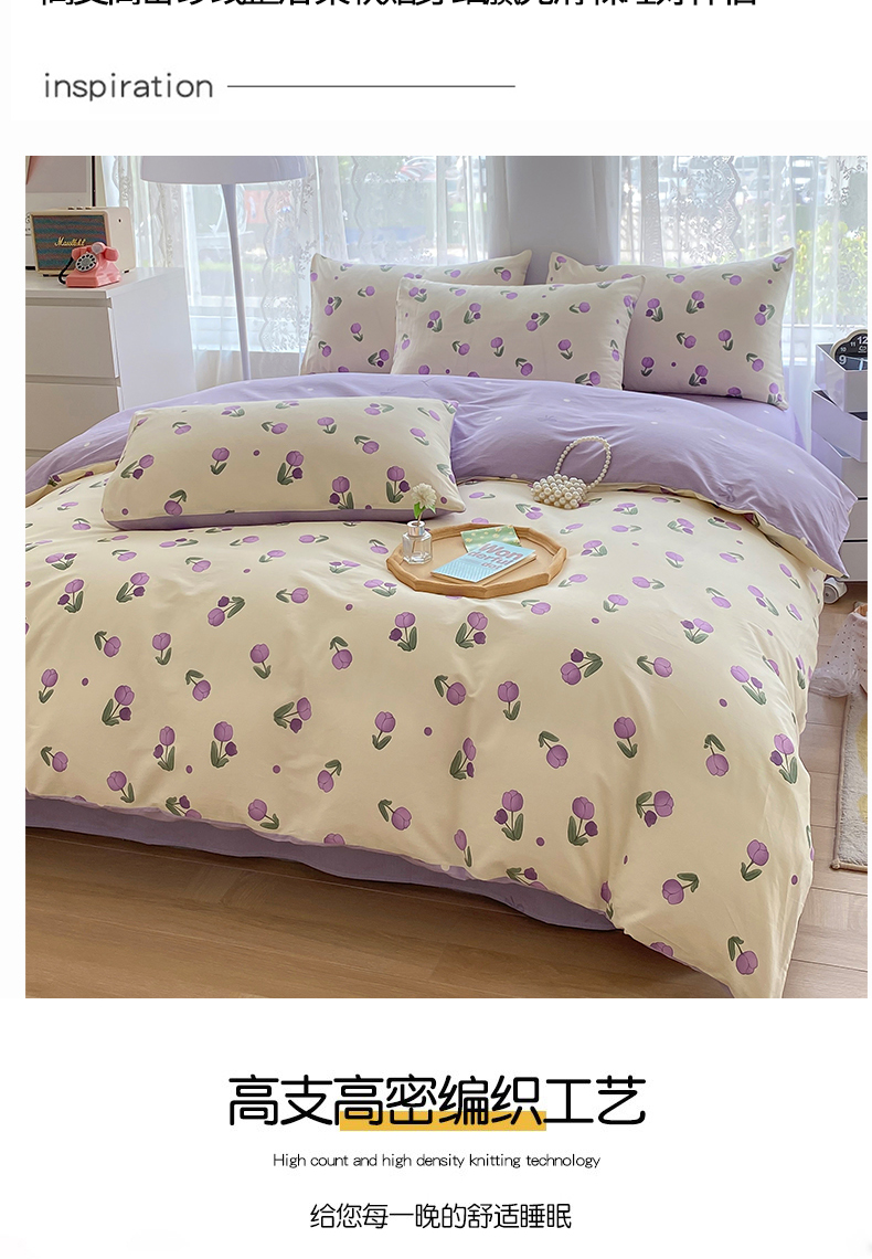 宇彬家纺 2026直播新款13372A类全棉纯棉印花单双人被套喷气小清新简约热款学生被罩 束朵-紫