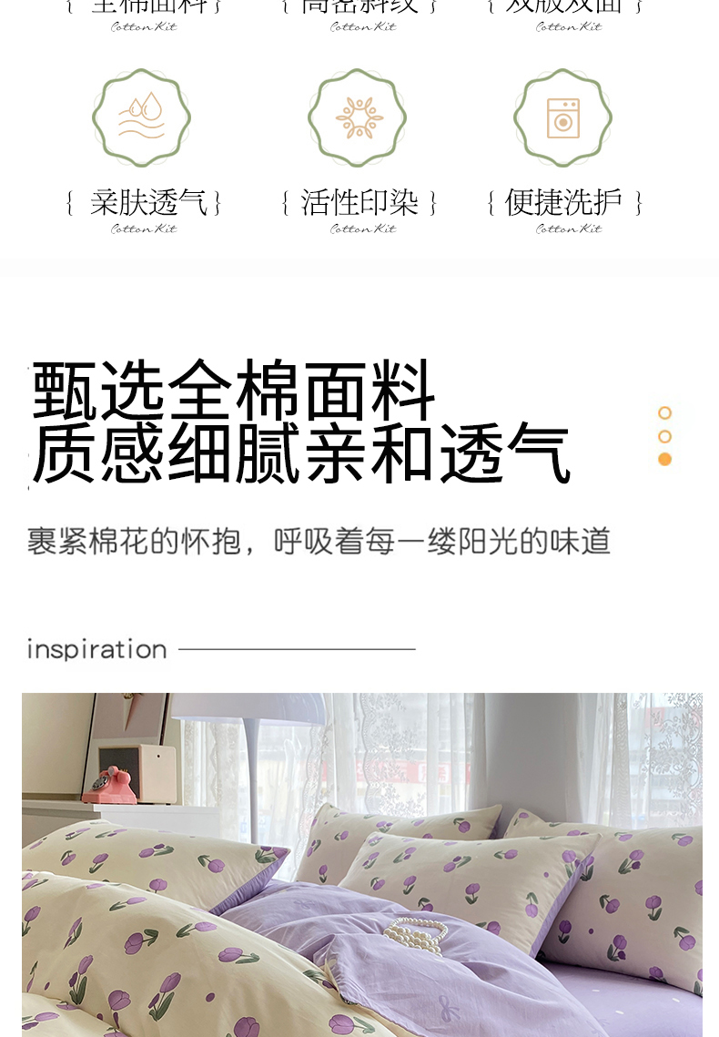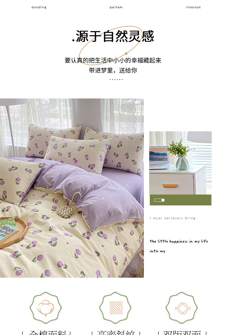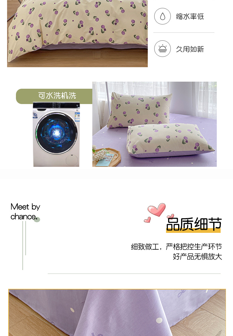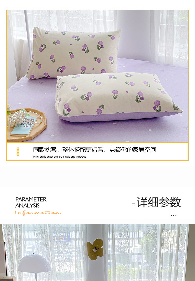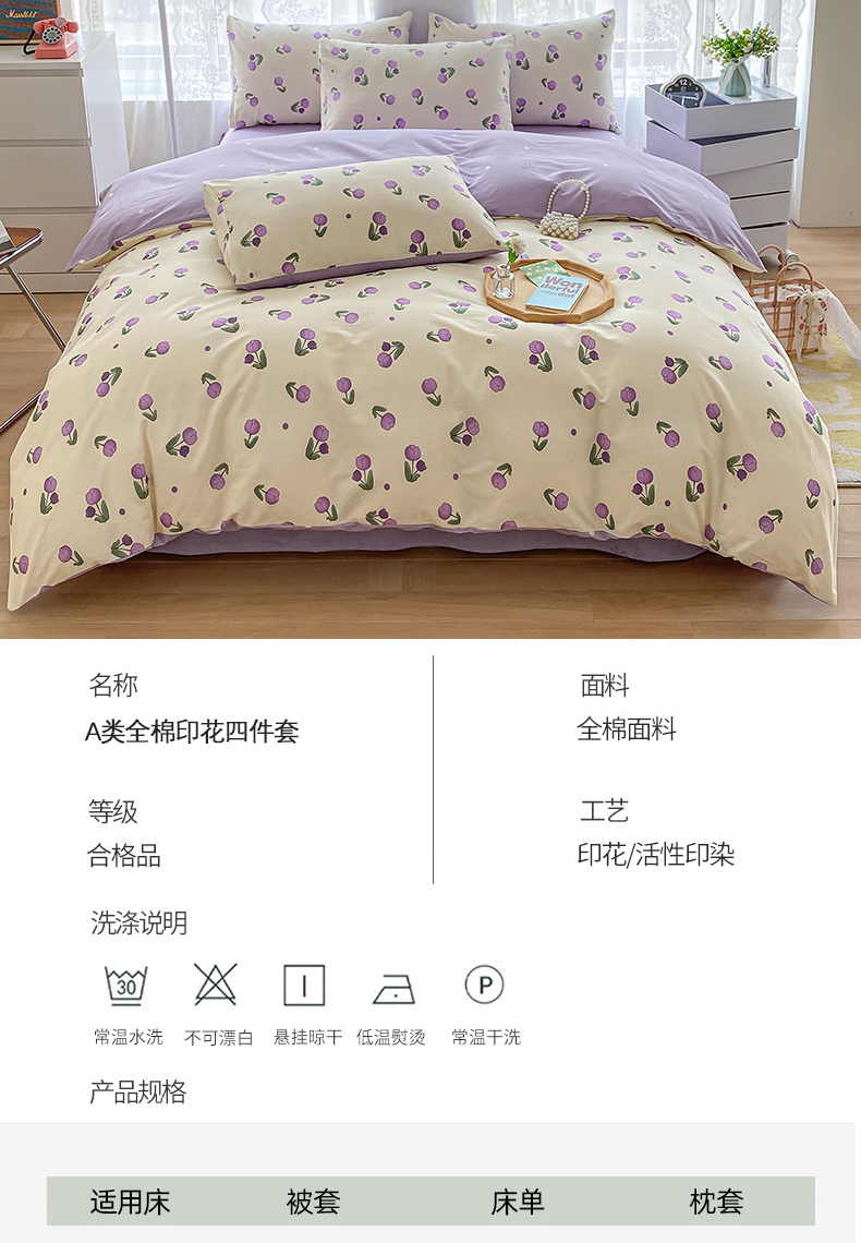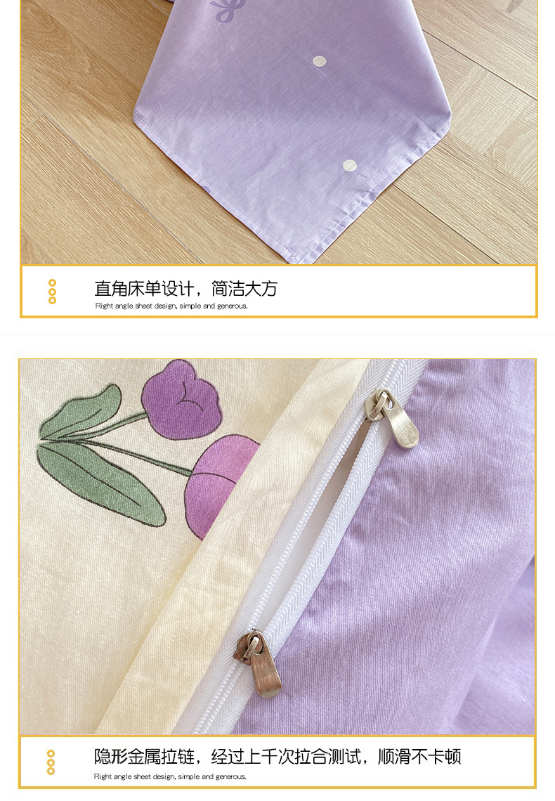 商品名称:宇彬家纺 2026直播新款13372A类全棉纯棉印花单双人被套喷气小清新简约热款学生被罩 束朵-紫