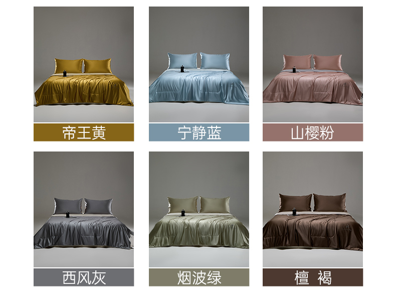 (总)CINNY馨宜 2025新款真丝水光锦氨凉感夏被空调被夏凉被凉感丝夏被,帝王黄,宁静蓝,凝夜紫,山樱粉,檀褐色,西风灰,烟波绿,组合图