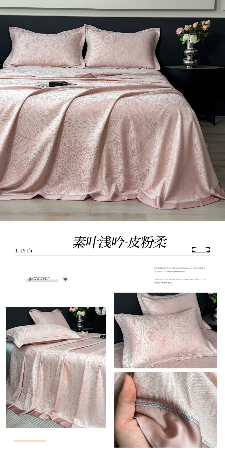 商品名称:印季家纺 2026新款色织提花100%竹纤维床单凉席 素叶浅吟-皮粉柔