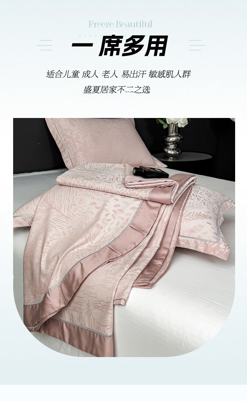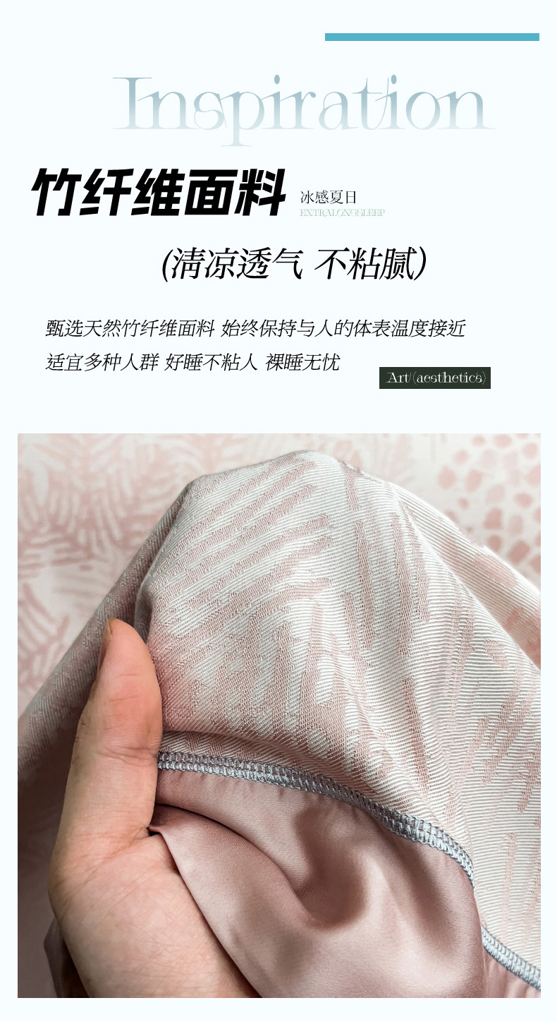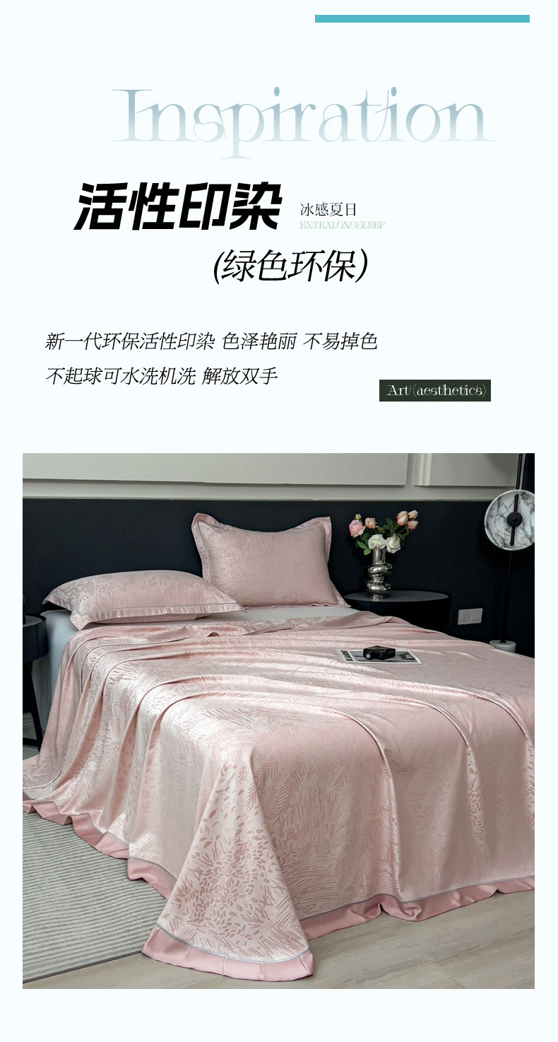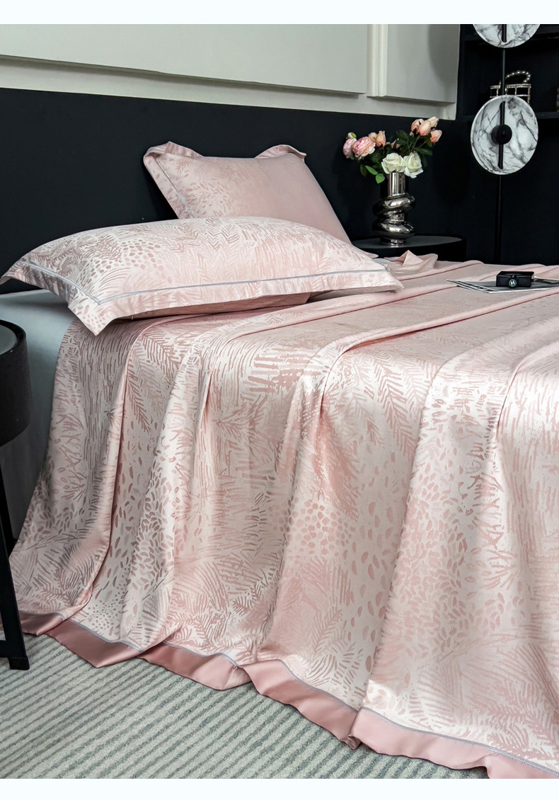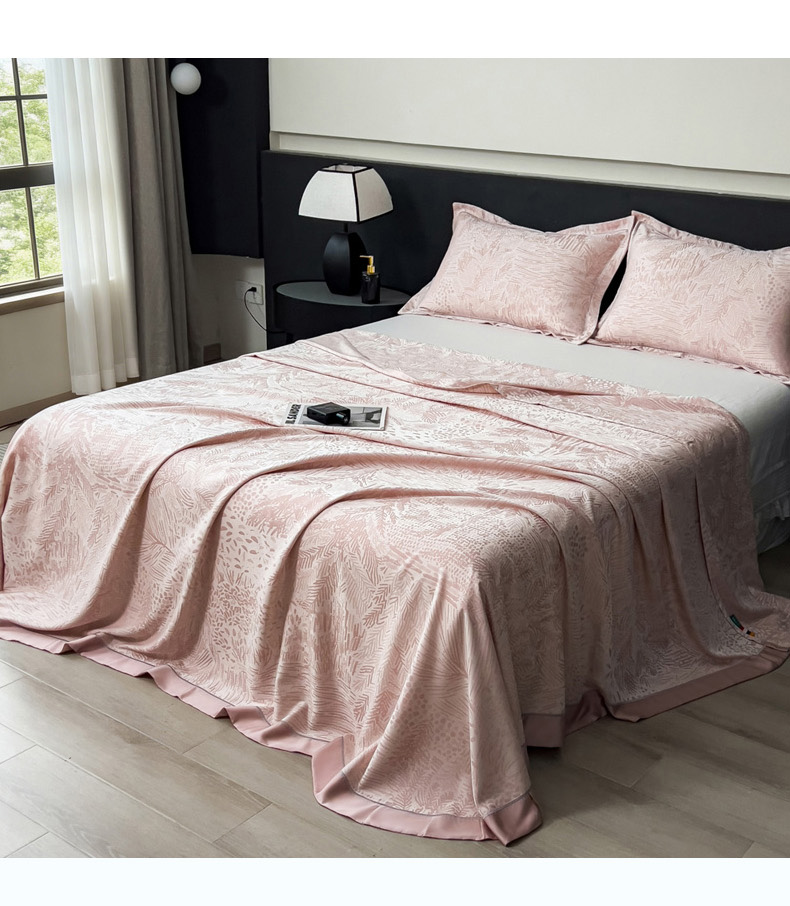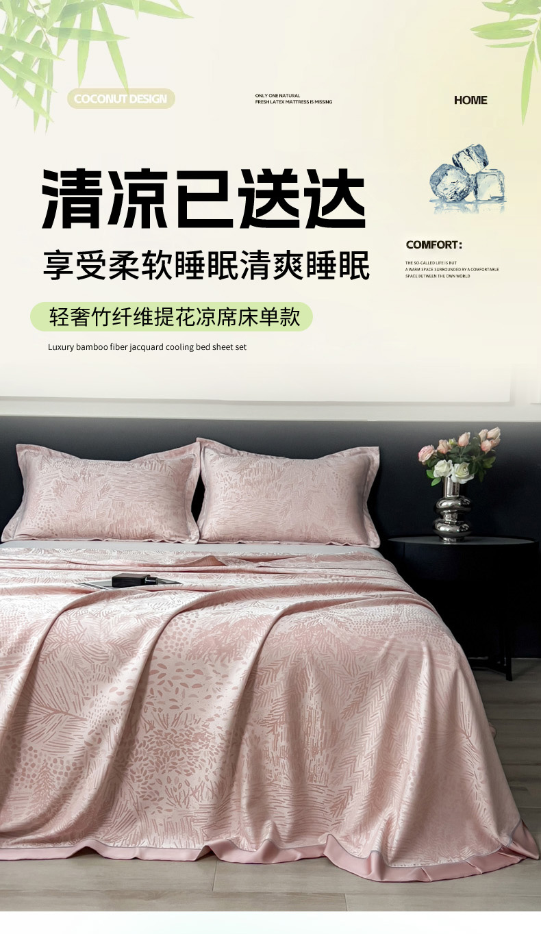 印季家纺 2026新款色织提花100%竹纤维床单凉席 素叶浅吟-皮粉柔