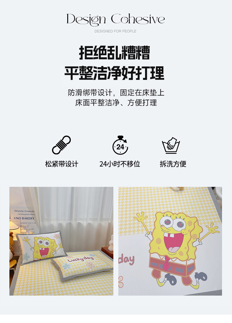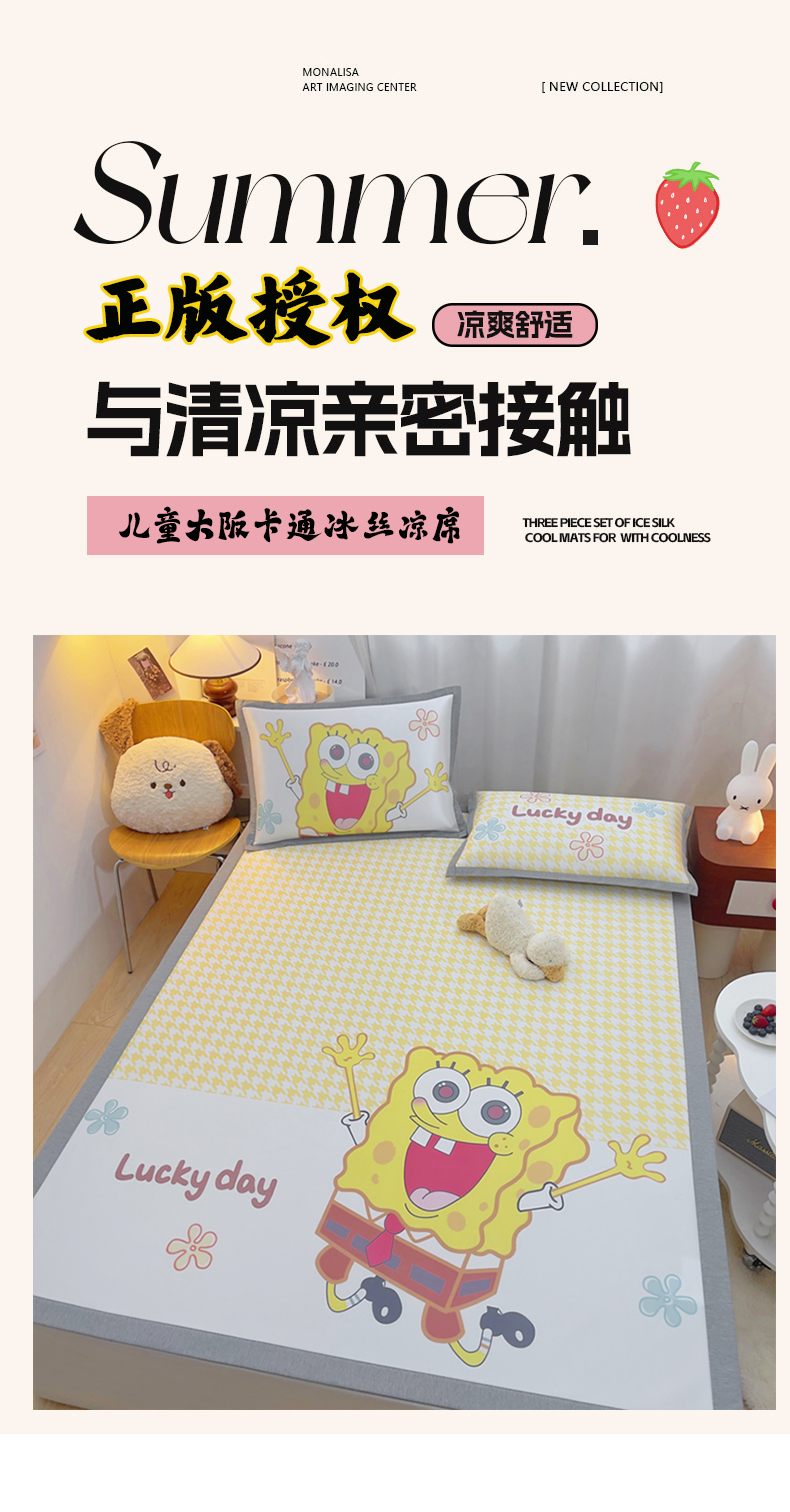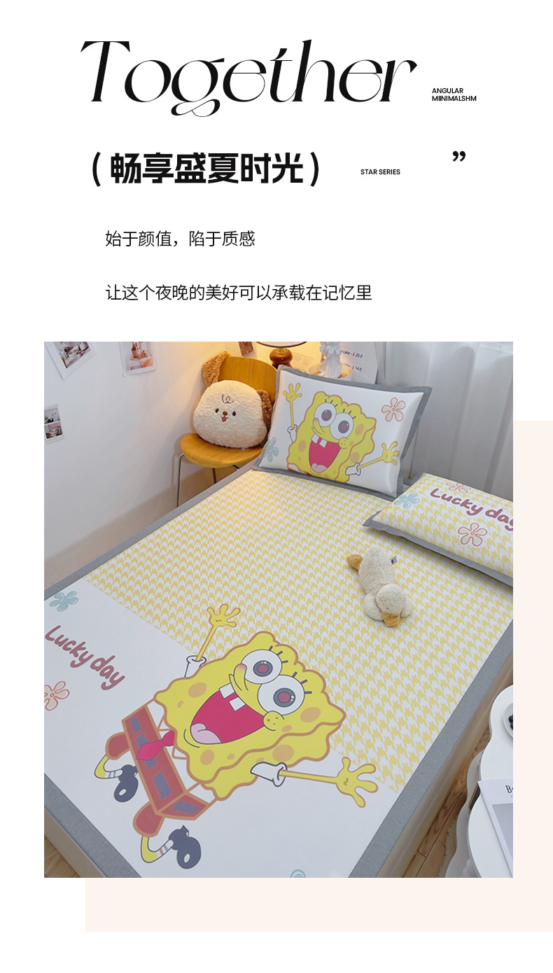 云恋家纺 2026春夏新款大阪卡通冰丝凉席席子空调软席套件 大阪-海绵宝宝