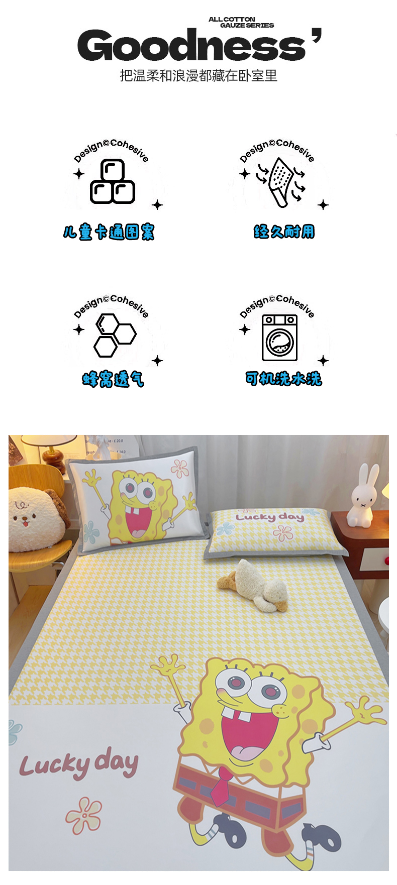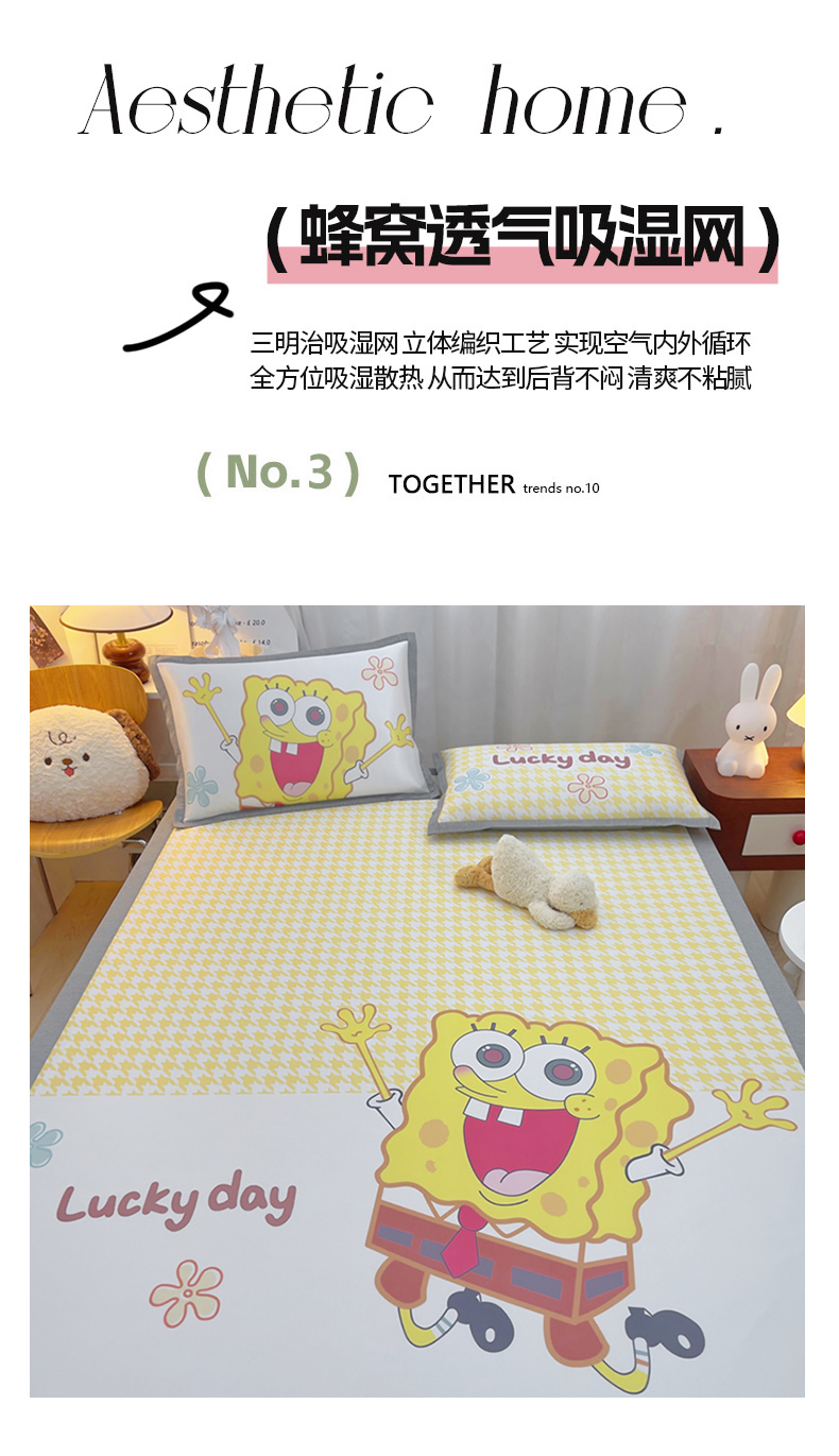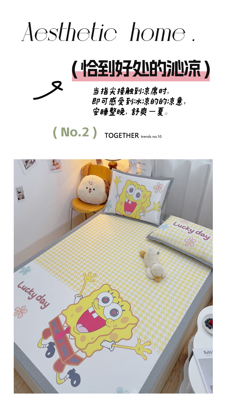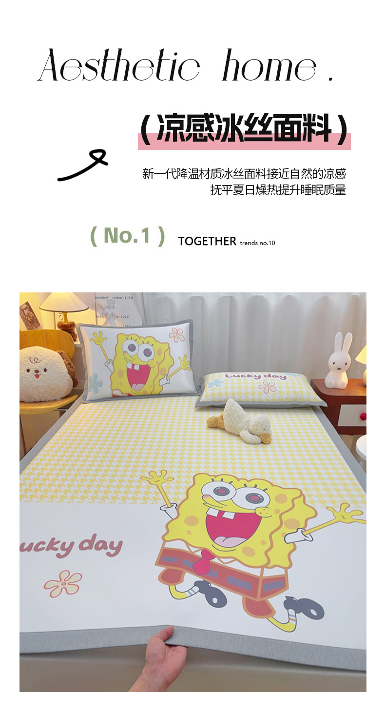 商品名称:云恋家纺 2026春夏新款大阪卡通冰丝凉席席子空调软席套件 大阪-海绵宝宝