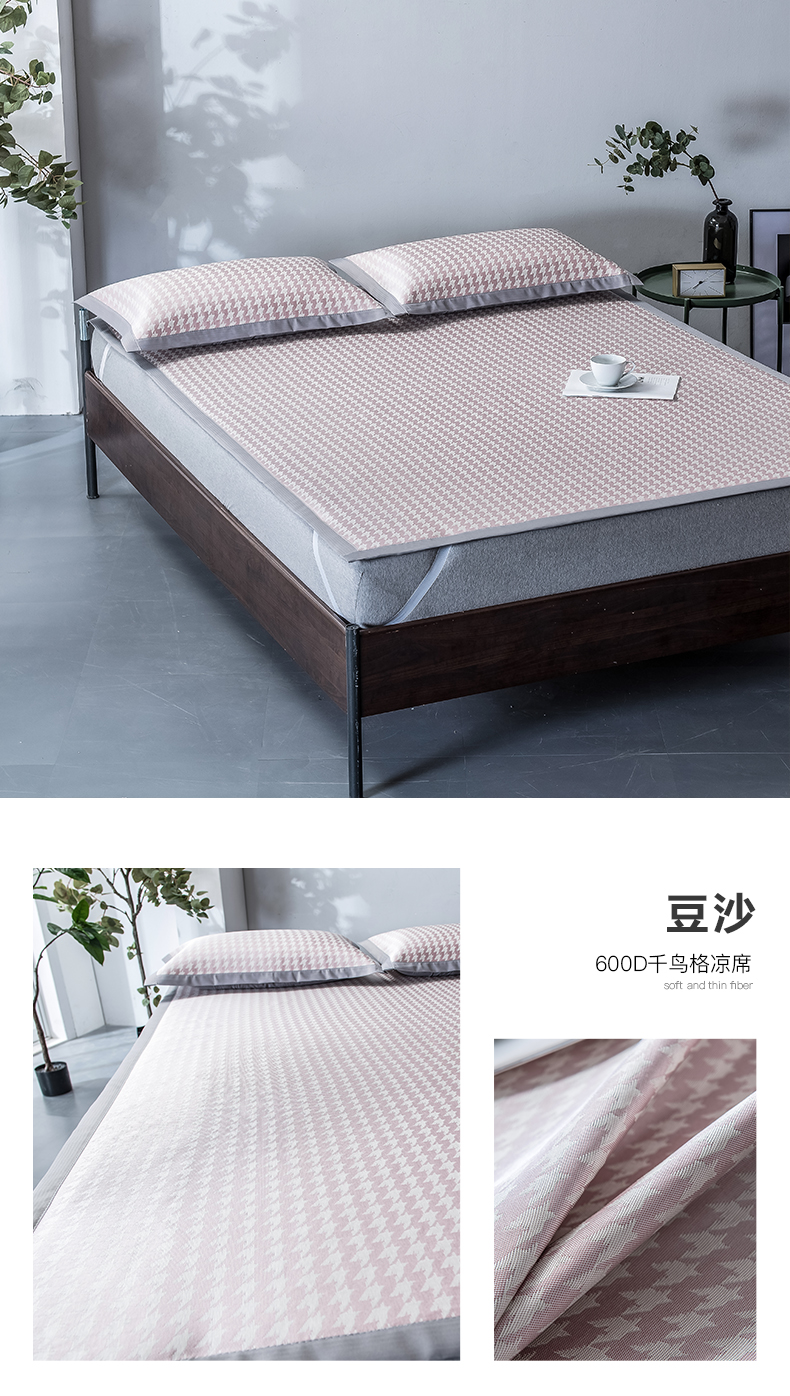 (总)印季家纺 2026新款600D千鸟格席子凉席,豆沙,鹅黄,浅灰,天蓝