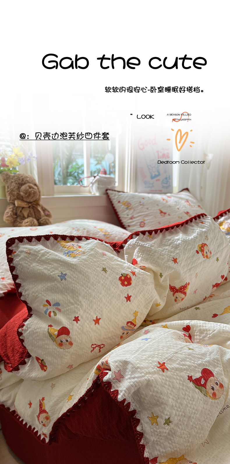 (总)水墨江南 2026新款贝壳边泡芙纱时尚印花四件套