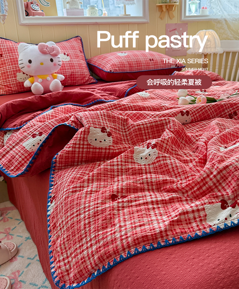 (总)初念 2026新款云感纱印花四件套,礼物KT,冰激凌派对,冰蓝凯蒂,红心凯蒂,花间KT,凯蒂粉小格,凯蒂星碎,凯蒂养鱼,凯蒂养鱼蓝,马卡龙乐蒂,美乐蒂邮册,棋盘粉KT,软萌方块乐蒂,小怪库洛米,幸运符号红,幸运符号蓝