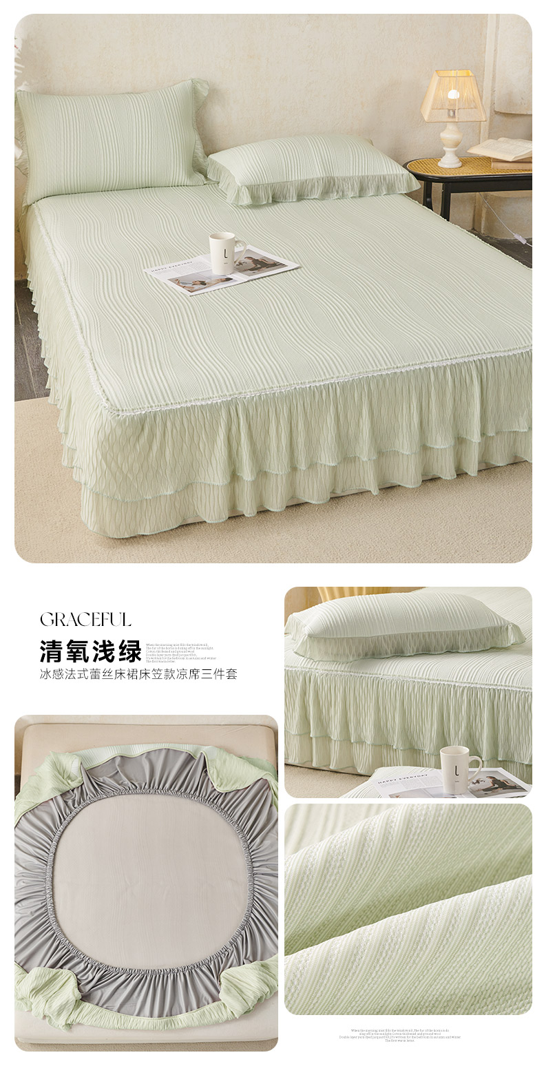 (总)桂雅居 2026新款高分子冰感蕾丝床裙床笠款凉席三件套,浅夏桃风,清氧浅绿,柔雾奶咖,素影灰纱,云漫冰蓝