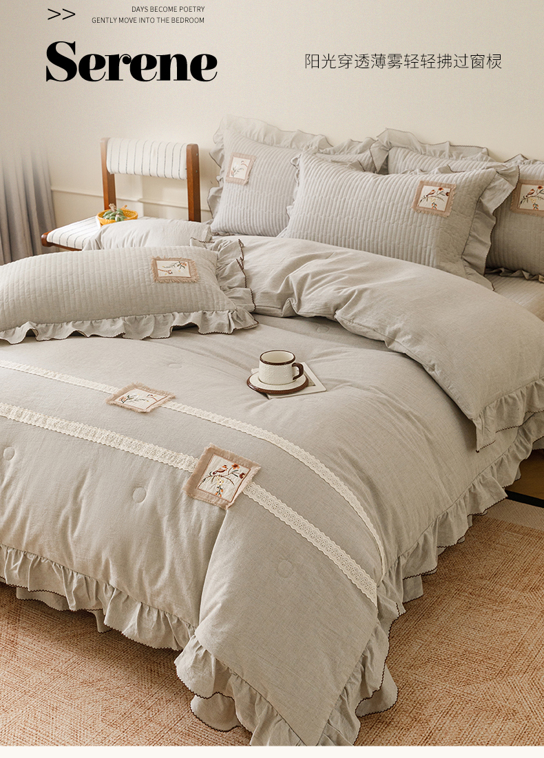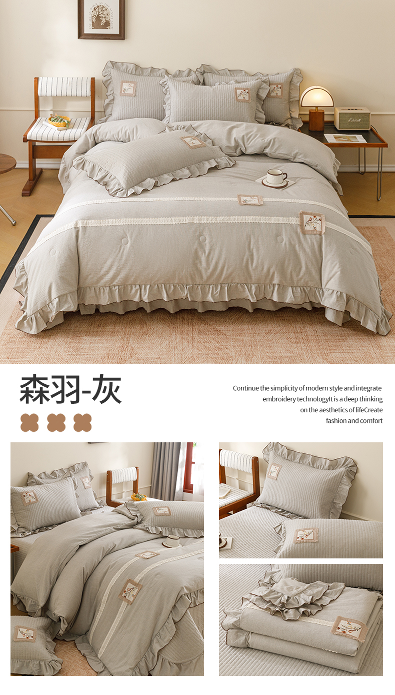 (总)瑞米家居 2026新款棉麻床盖夏被四件-森羽,森羽-灰,森羽-芥末绿,森羽-香芋紫,森羽-原白