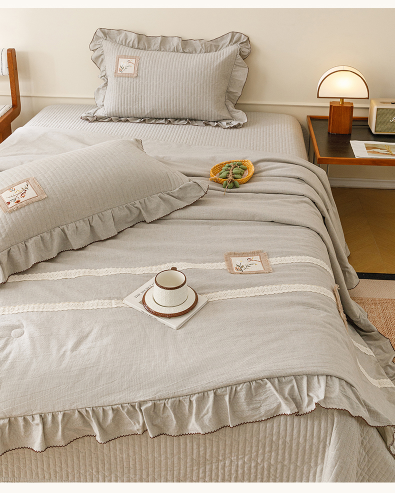 瑞米家居 2026新款棉麻床盖夏被四件-森羽 森羽-灰