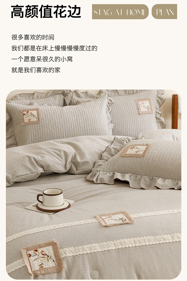 (总)瑞米家居 2026新款A类棉麻提花花边款四件套-翩然乐语,翩然乐语-粉,翩然乐语-红咖,翩然乐语-芥末绿,翩然乐语-深灰