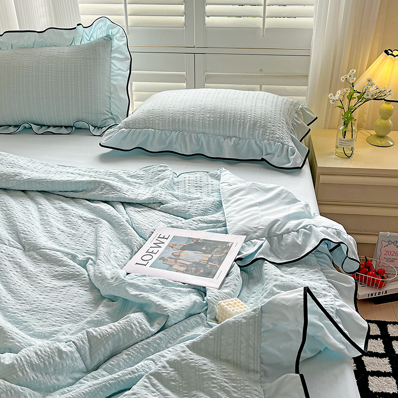 商品名称:(总)仟网汇 2026新款赫本纯色泡泡纱花边款夏被夏凉被空调被四件套