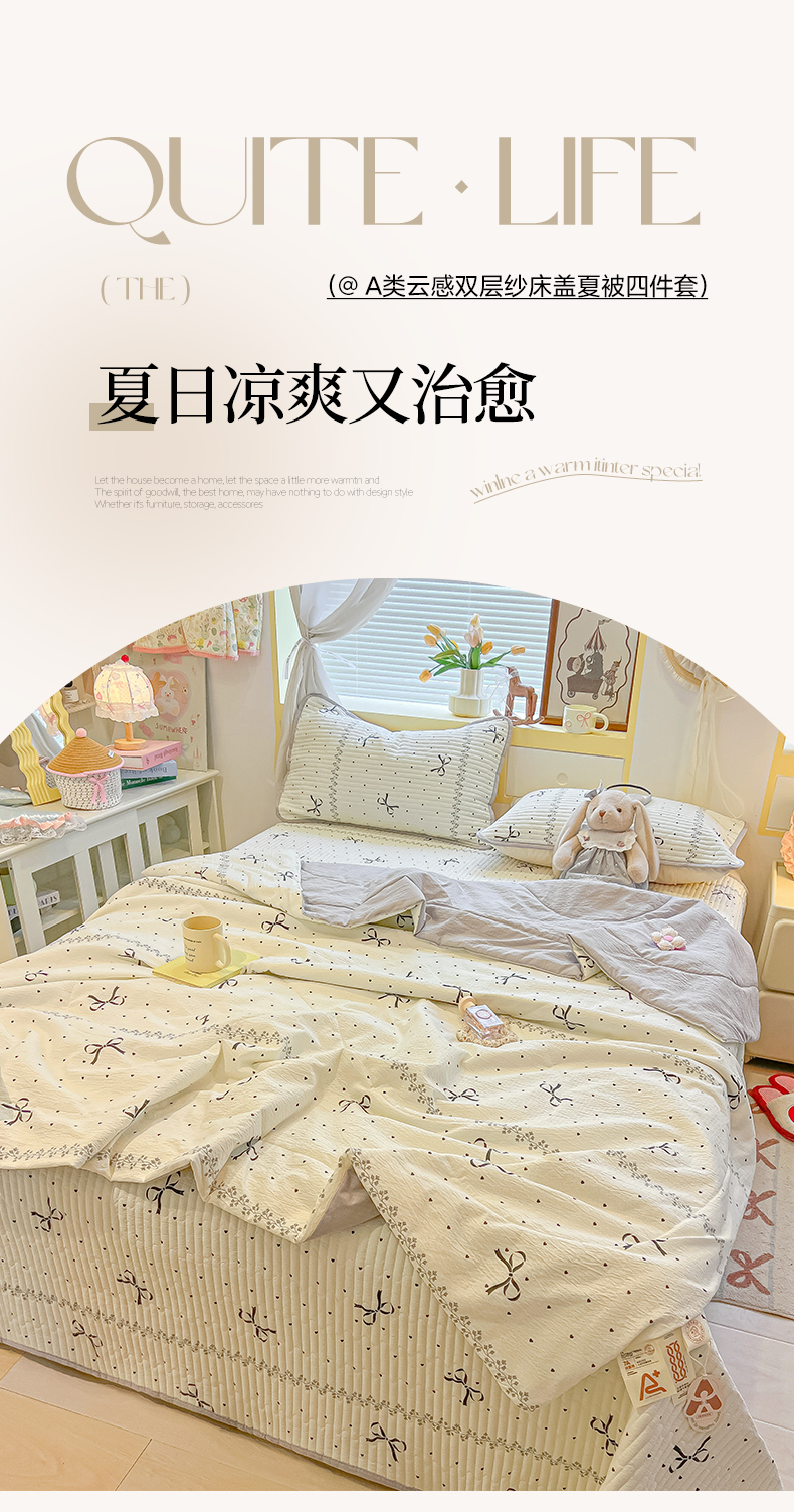 当前位置: 91家纺网 > 商品网购 > 床品套件 > 四件套 > 夏被四件套 > 欧妮家纺 2026新款A类云感双层纱夏被床盖四件套 夏日条纹