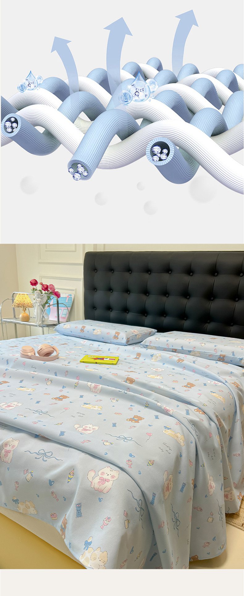 • 91家纺网 家纺一手货源 找家纺 欧妮家纺 2026新款老粗布床单凉席席子单床单 老粗布-小猫时光蓝