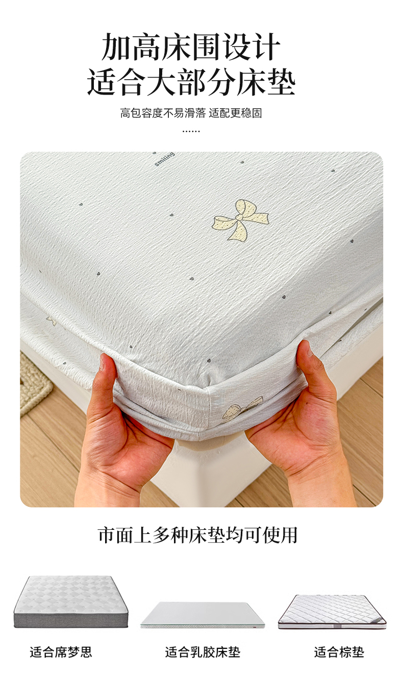 (总)丝芙妮家居 2026春夏新款皱皱棉双层纱泡芙棉床笠 床笠单件,晨光-黄,晨光-灰,花簇,怀旧-兰,牧歌,顽宠,雅蔓,樱桃,云蝶-粉,云蝶-兰,知锦,组合图仅供展示不可下单