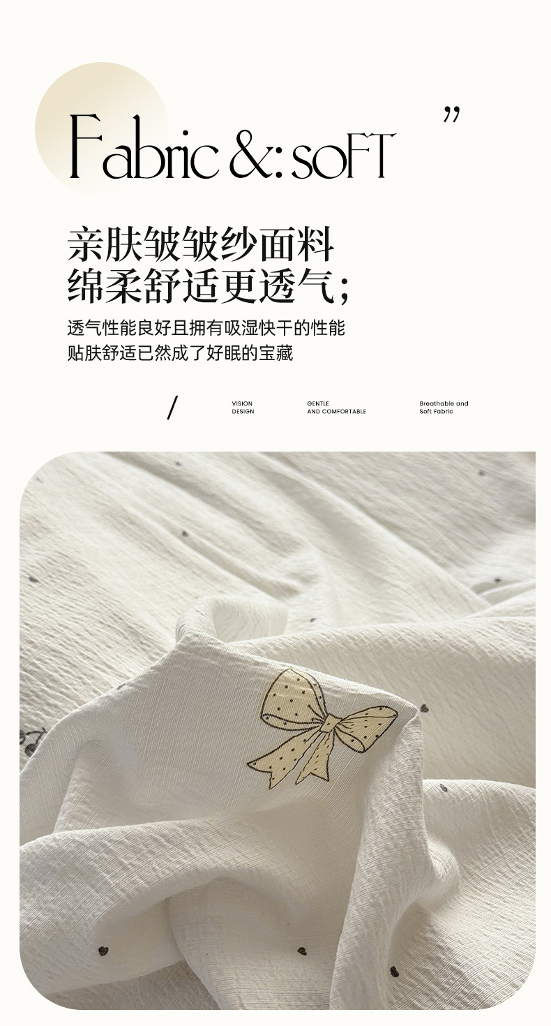 (总)丝芙妮家居 2026新款皱皱棉双层纱泡芙棉四件套,缤纷南瓜,春之约,格纹爱心,花清梦,花枝狗狗,假日小狗,莓果冰淇淋,草莓奶昔,泡芙蝴蝶结,浅川织格,素描花海,晚安甜心,星月点点,组合图仅做展示不可下单