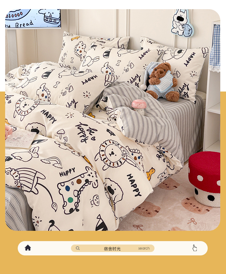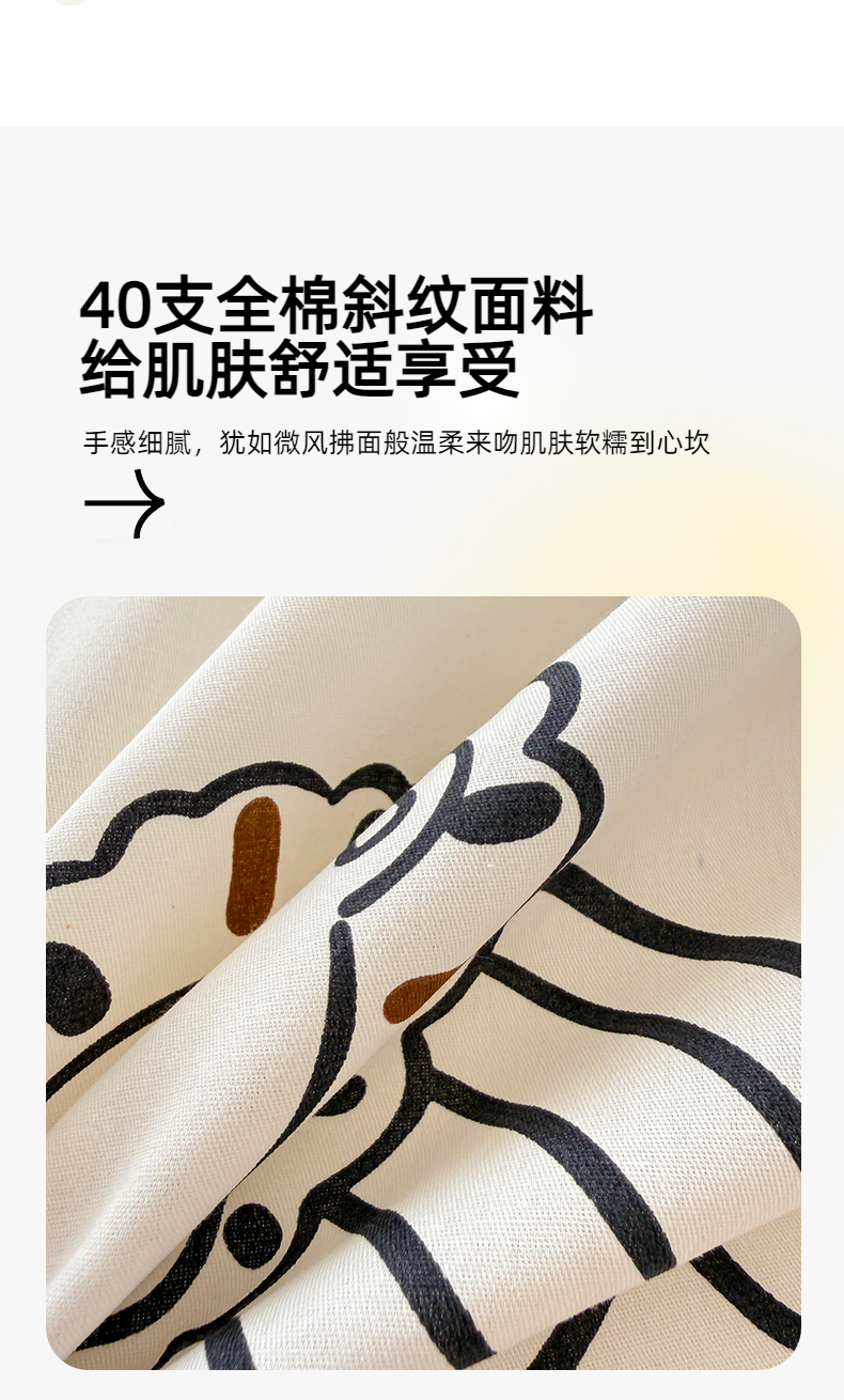 当前位置: 91家纺网 > 商品网购 > 床品套件 > 四件套 > 全棉普通四件套 > 女子家纺 2026新款全棉纯棉12868卡通印花四件套 黑白动物集