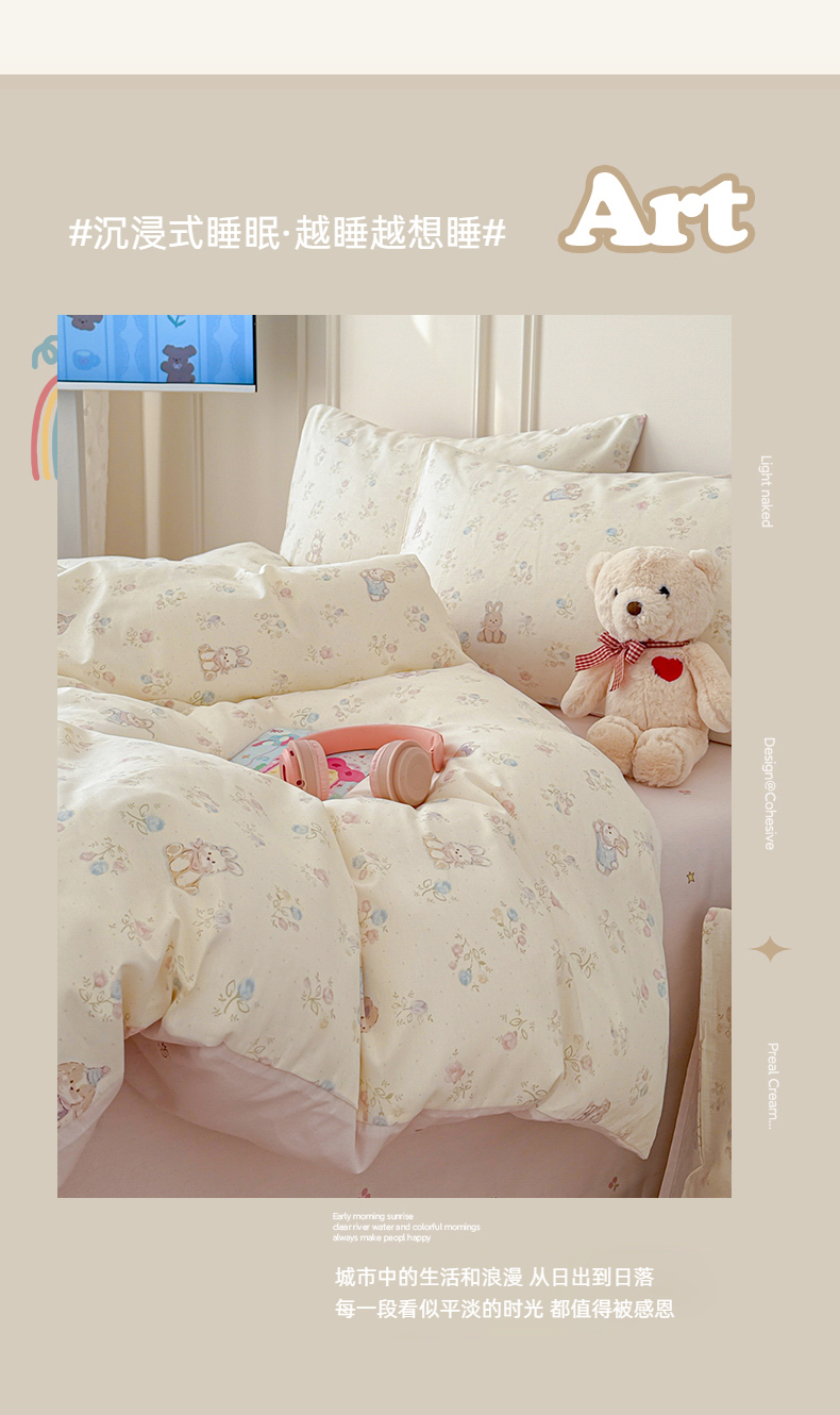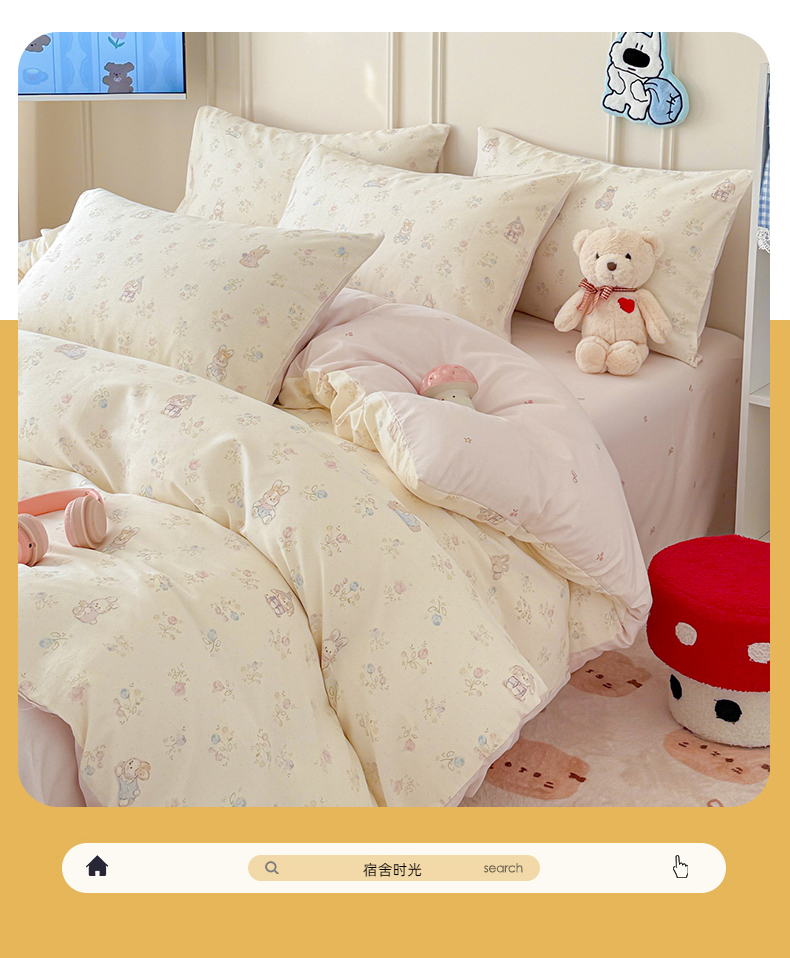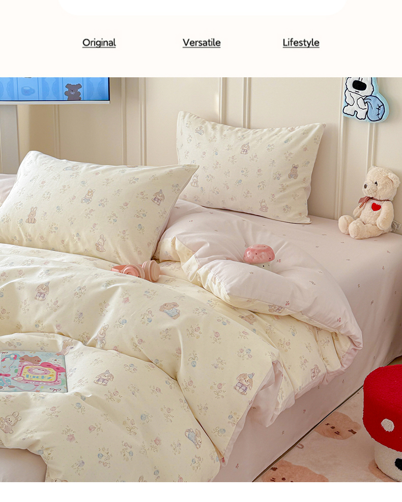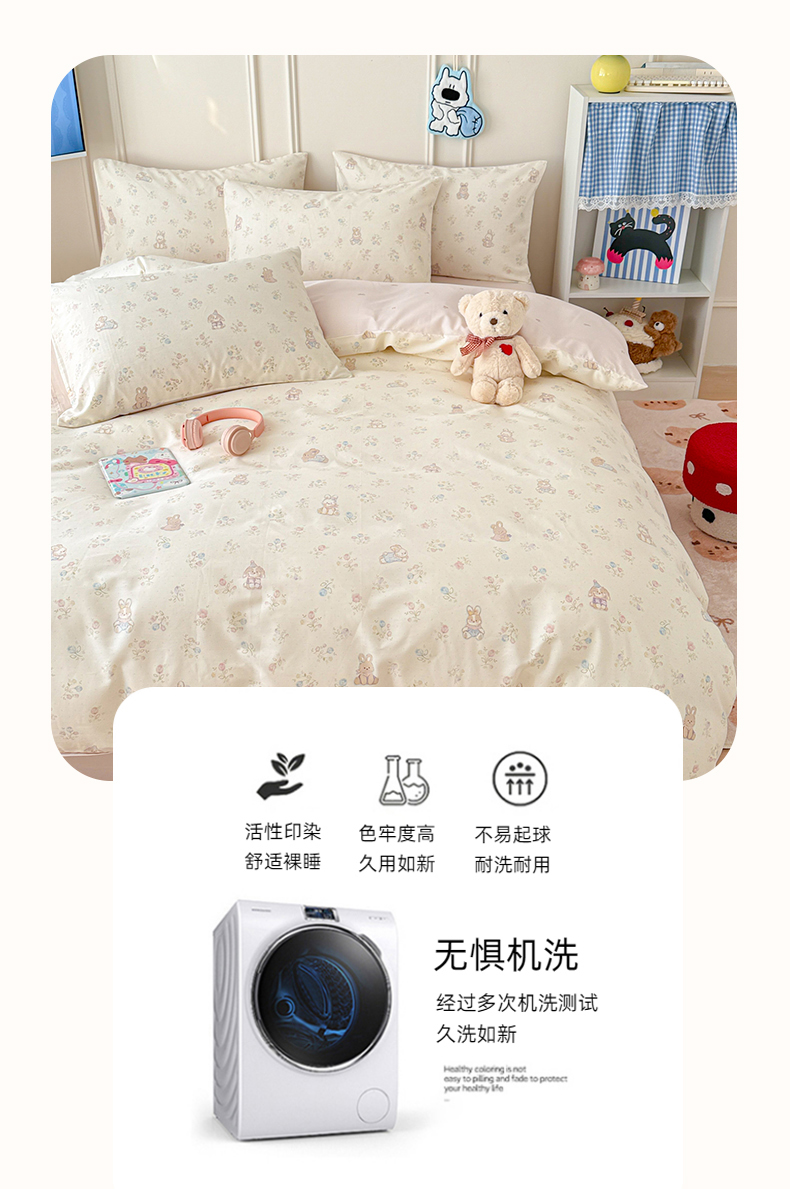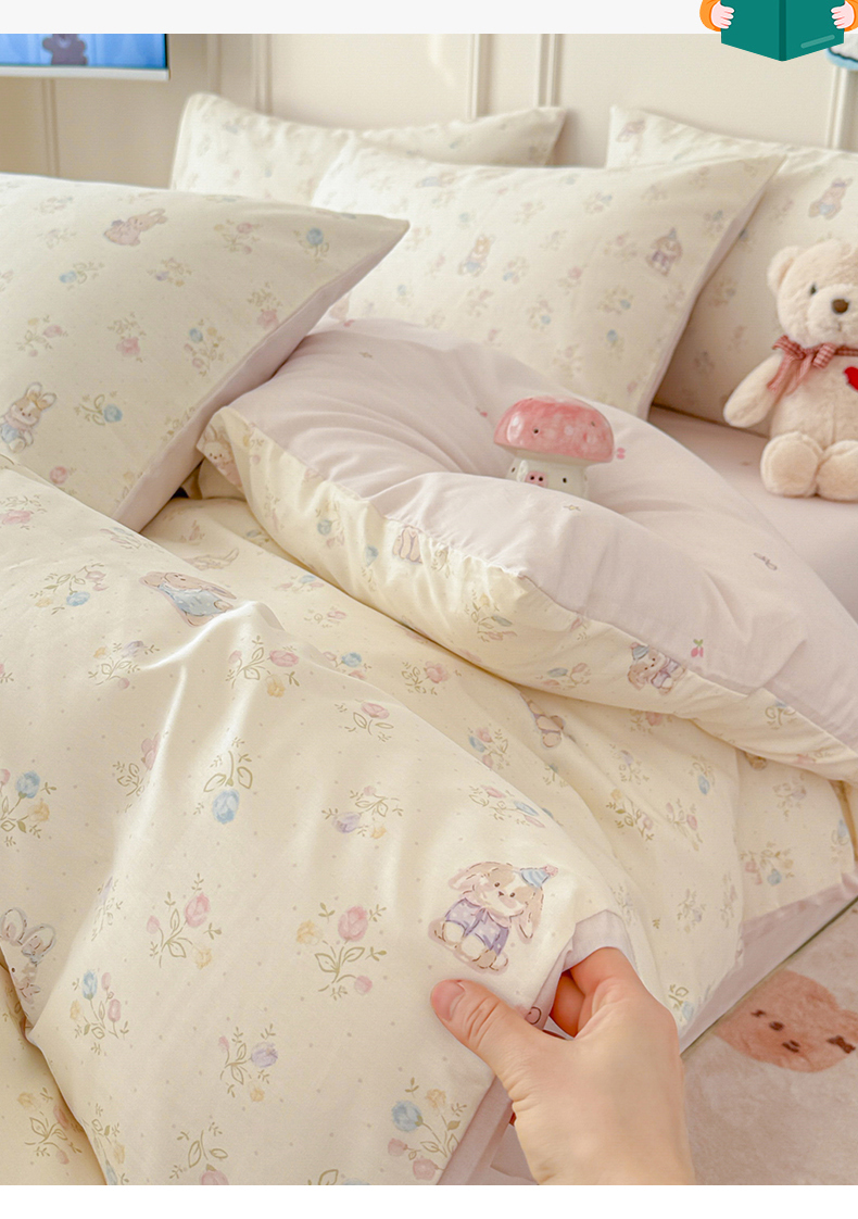 当前位置: 91家纺网 > 商品网购 > 床品套件 > 四件套 > 全棉普通四件套 > 女子家纺 2026新款全棉纯棉12868卡通印花四件套 兔叽碎花