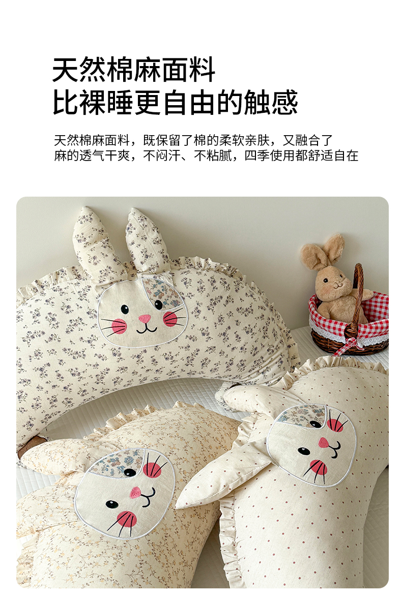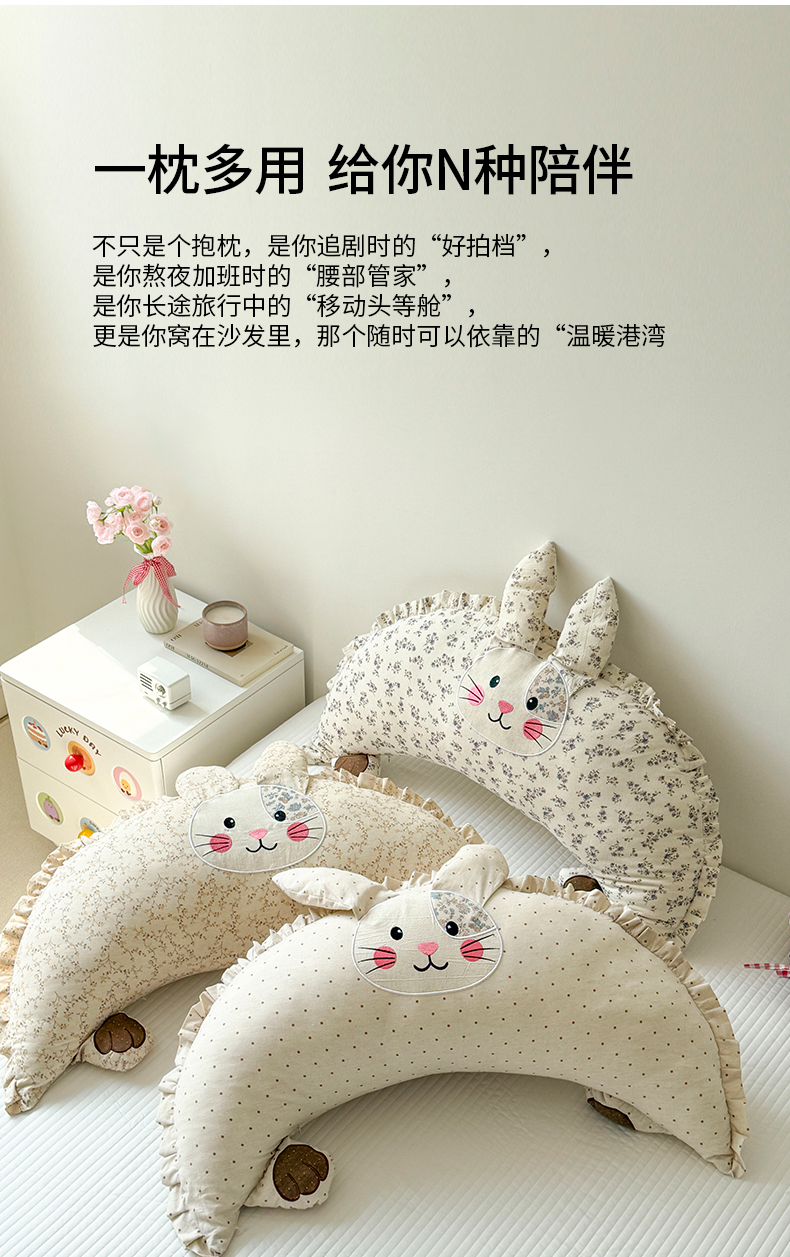 (总)蔻眠 多功能月亮兔棉麻大抱枕靠枕卡通枕芯异形枕头