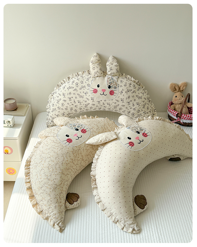 蔻眠 多功能月亮兔棉麻大抱枕靠枕卡通枕芯异形枕头 月亮兔-波点