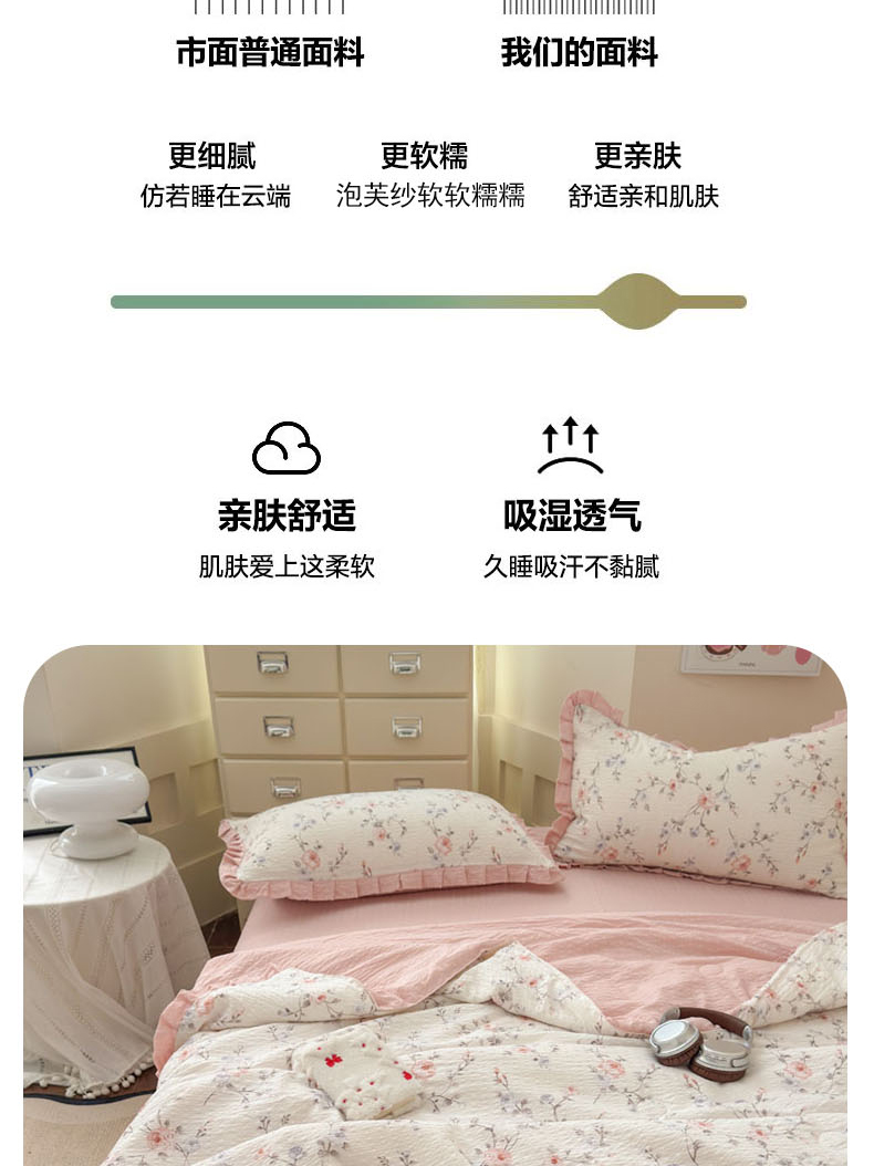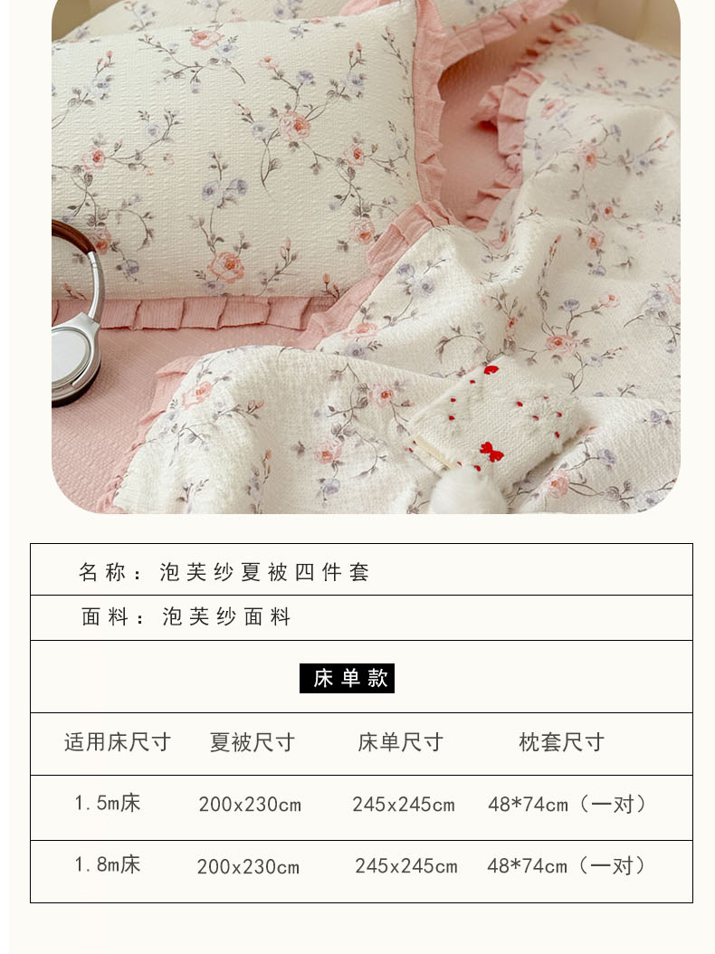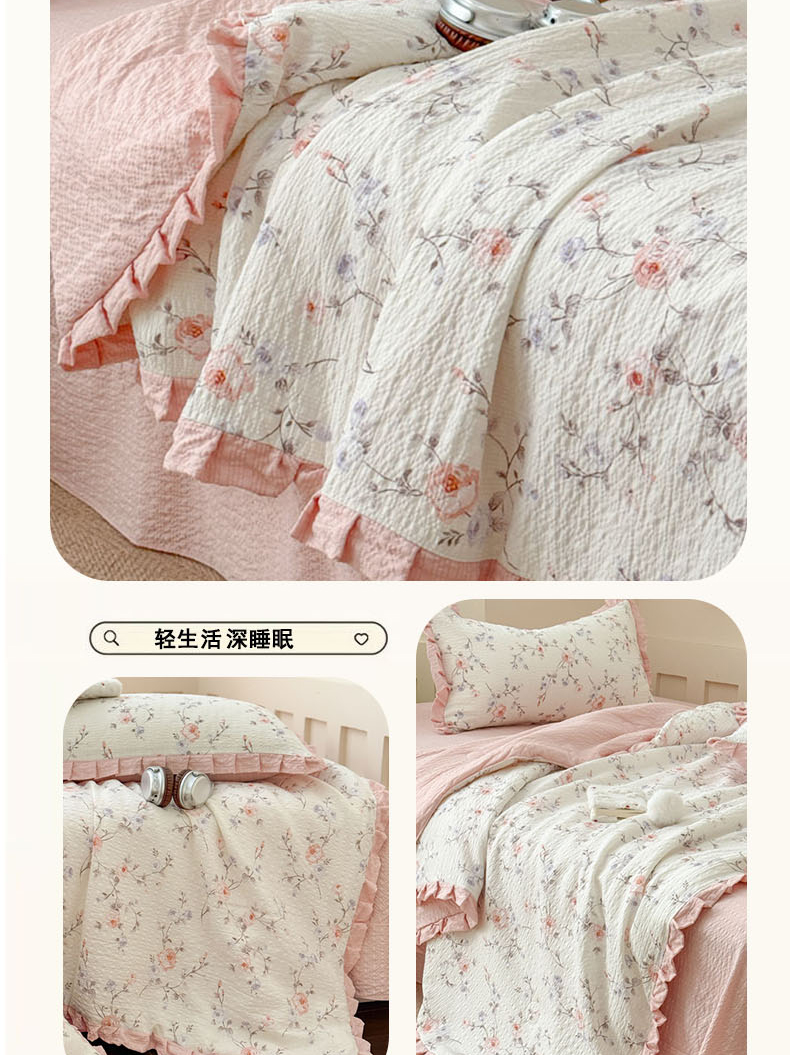商品名称:(总)迪梦姿家纺 2026新款泡芙纱花边款夏被四件套-款式二