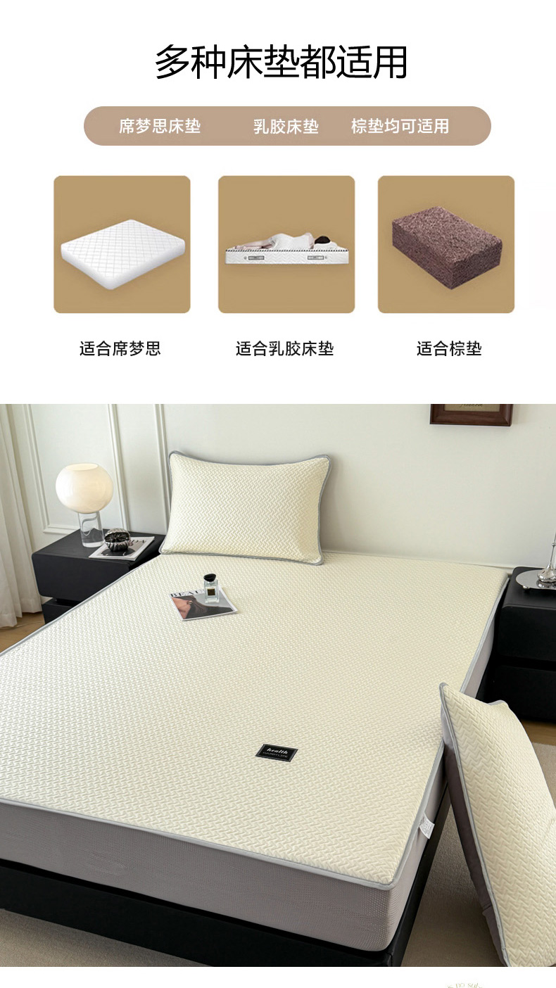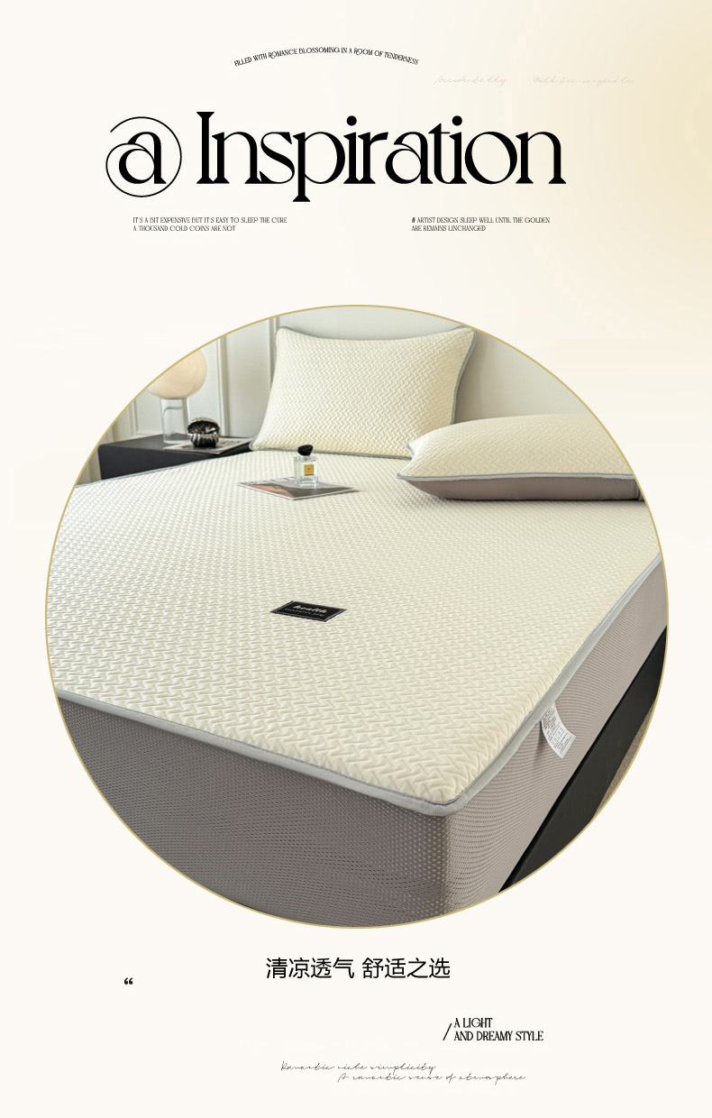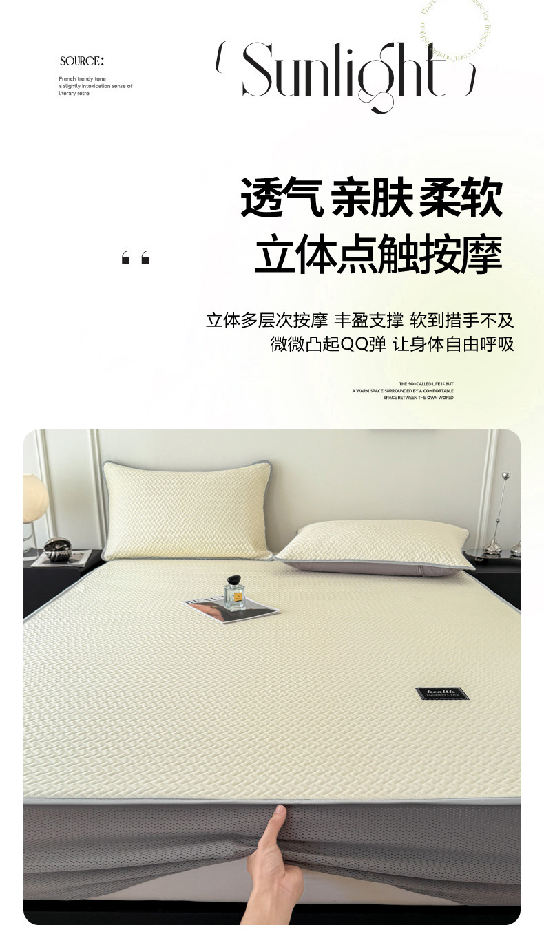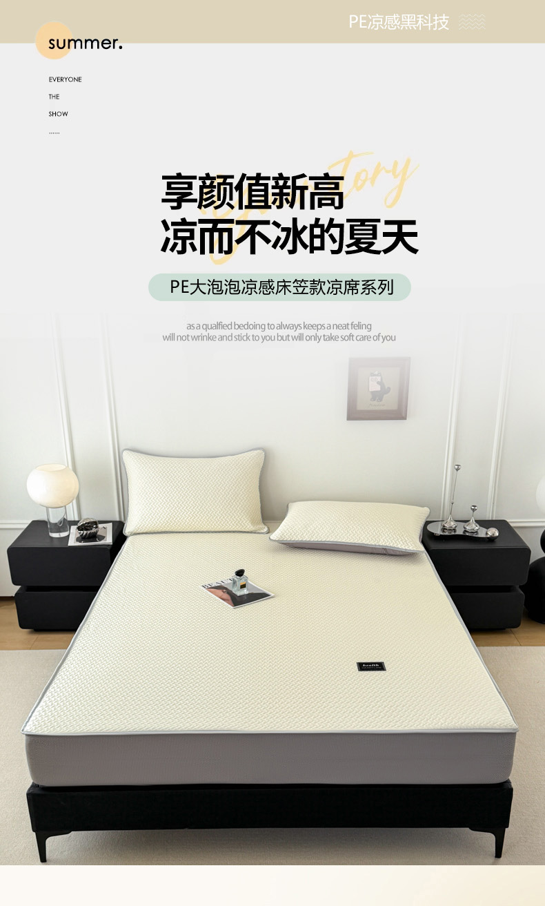 倾慕家纺 2026春夏新款全PE冰豆豆全包围床笠款凉席席子 箭纹米白