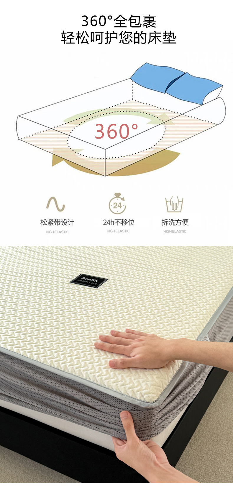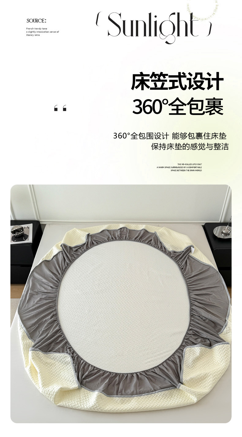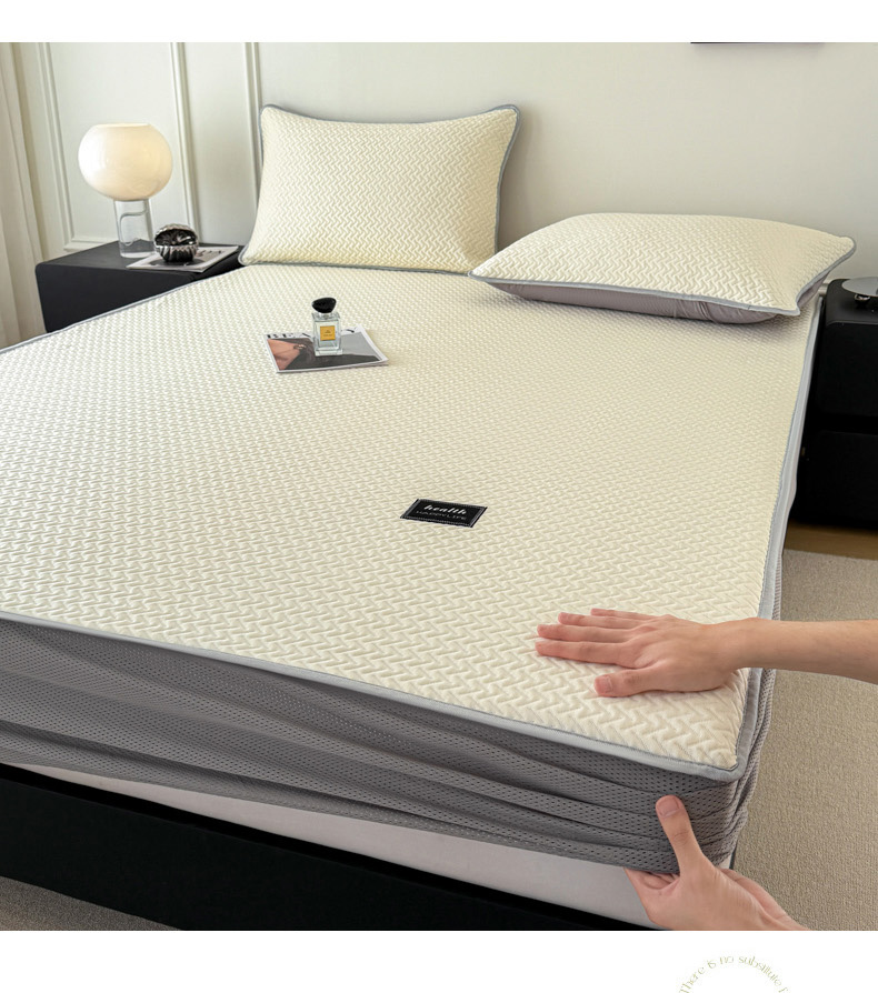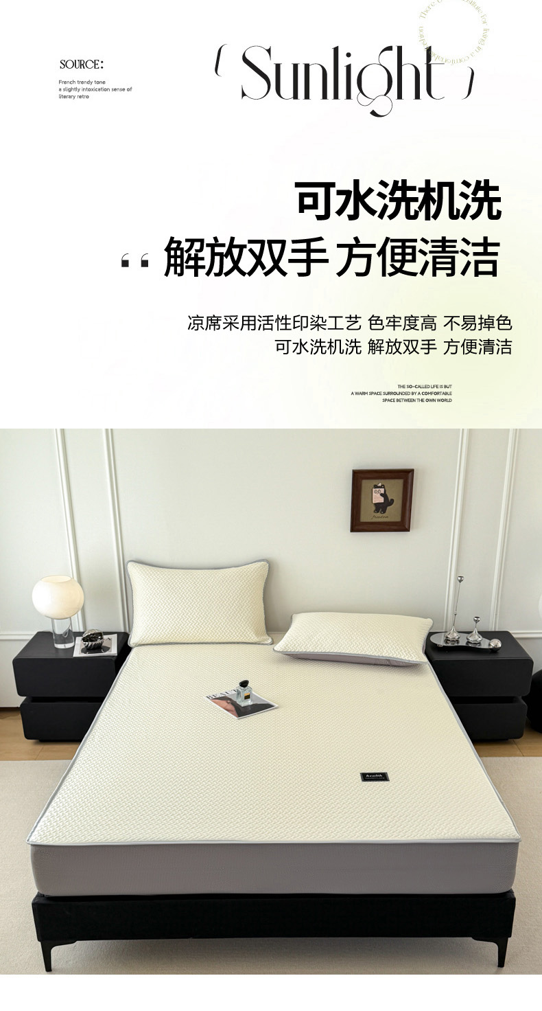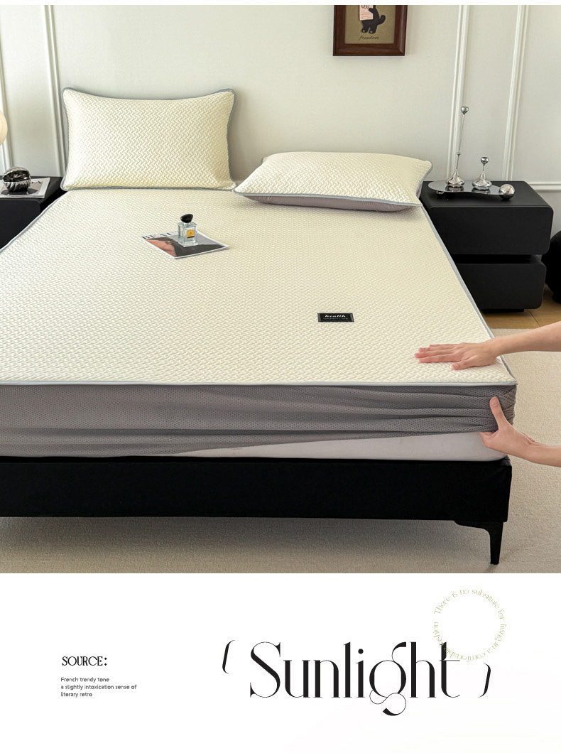 倾慕家纺 2026春夏新款全PE冰豆豆全包围床笠款凉席席子 箭纹米白