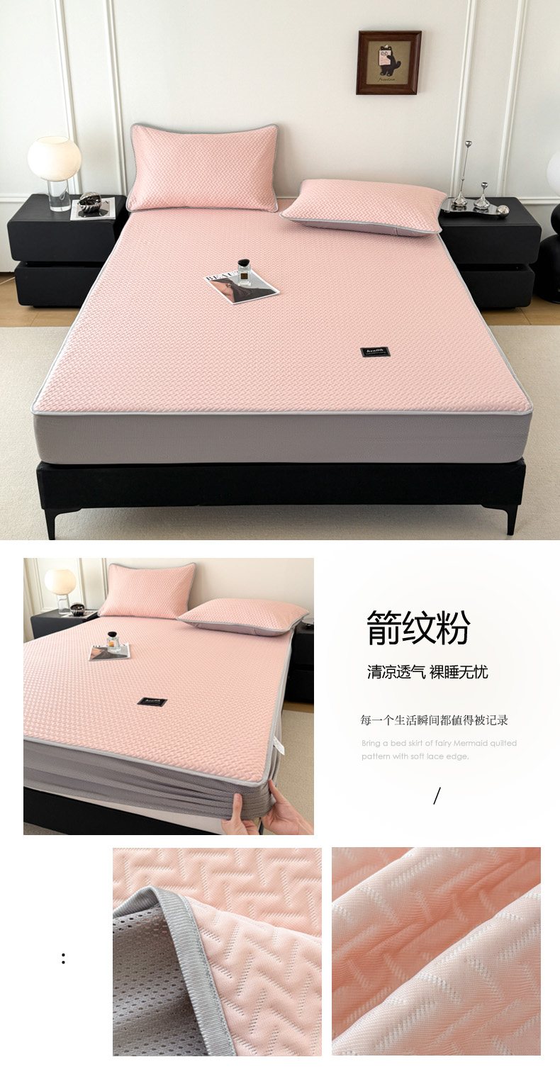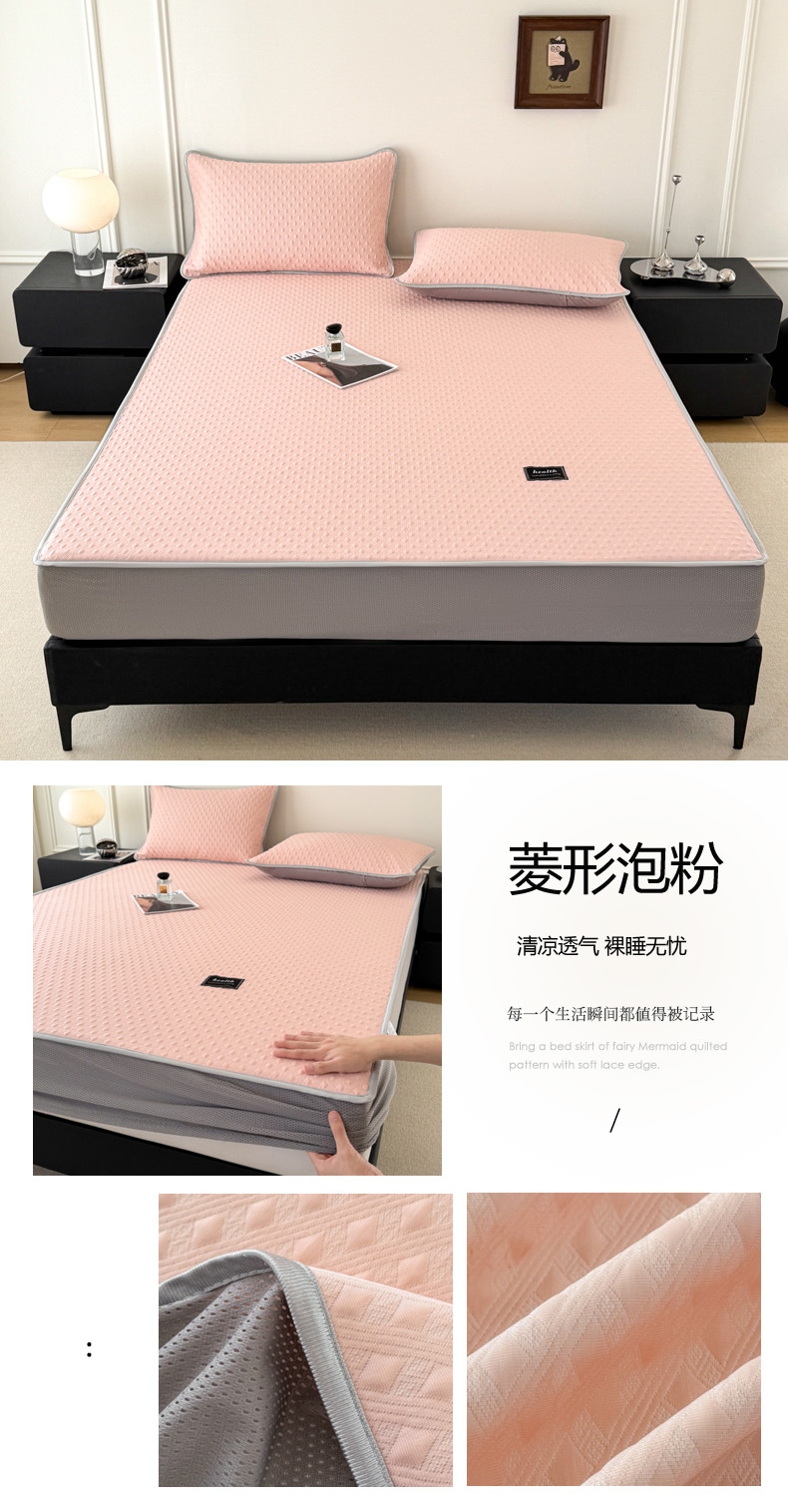 (总)倾慕家纺 2026春夏新款全PE冰豆豆全包围床笠款凉席席子,箭纹粉,箭纹灰,箭纹卡其,箭纹蓝,箭纹绿,箭纹米白,菱形泡粉,菱形泡灰,菱形泡蓝,菱形泡绿,菱形泡米白,菱形泡香槟