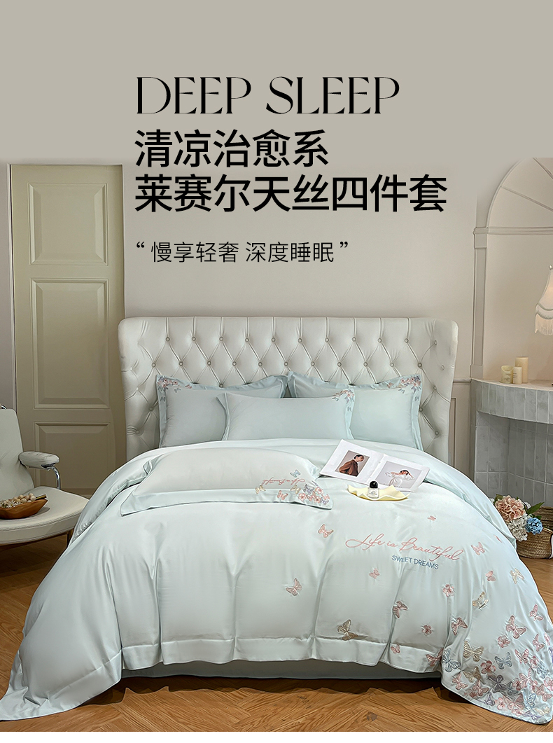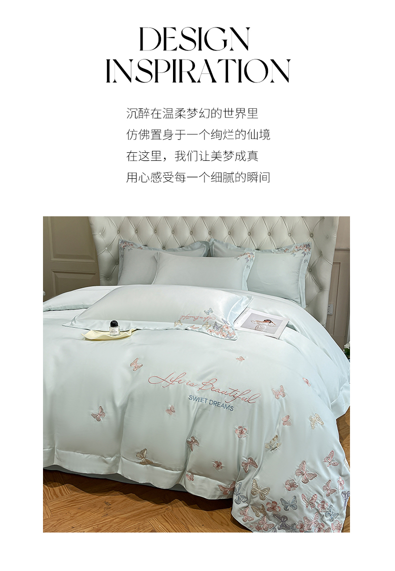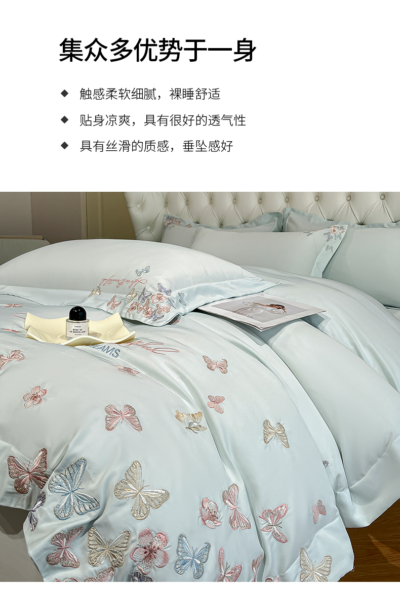 当前位置: 91家纺网 > 商品网购 > 床品套件 > 四件套 > 其它四件套 > 经年 2026春夏新款天丝刺绣四件套-蝶恋 蝶恋-抹茶绿
