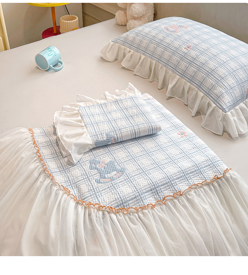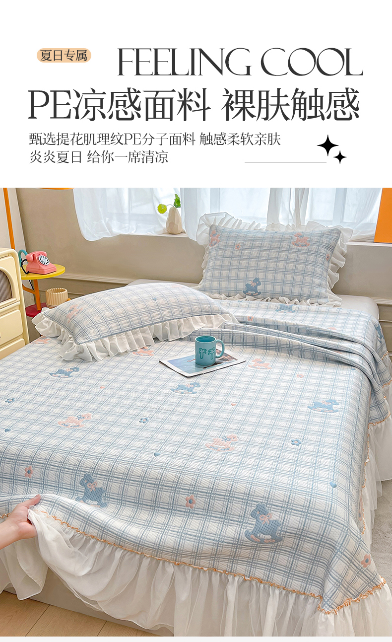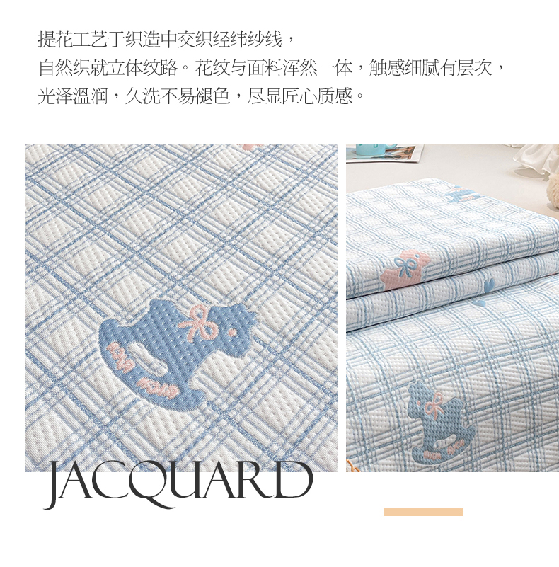 商品名称:情恒家纺 2026新款PE卡通提花床盖席席子凉席三件套摇摇马 摇摇马-冰蓝