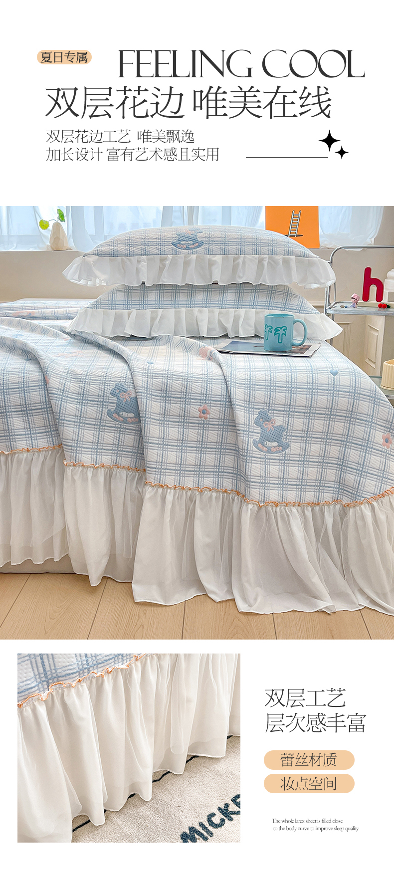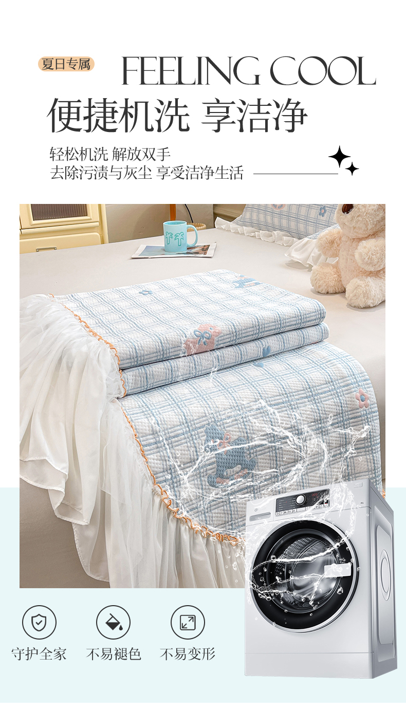 (总)情恒家纺 2025新款凉感豆豆床盖款三件套(淡雅竹香),冰川蓝,星耀灰,树莓粉,牛油果绿,雾蓝