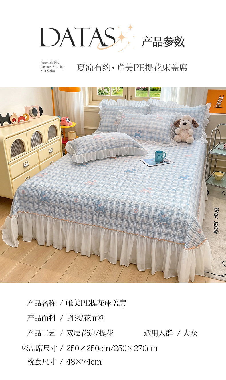 (总)情恒家纺 2026春夏新款PE提花肌理纹床笠式床裙席凉席席子-安娜,安娜-豆沙粉,安娜-抹茶绿,安娜-深远灰,安娜-晚安蓝,安娜-星辰灰