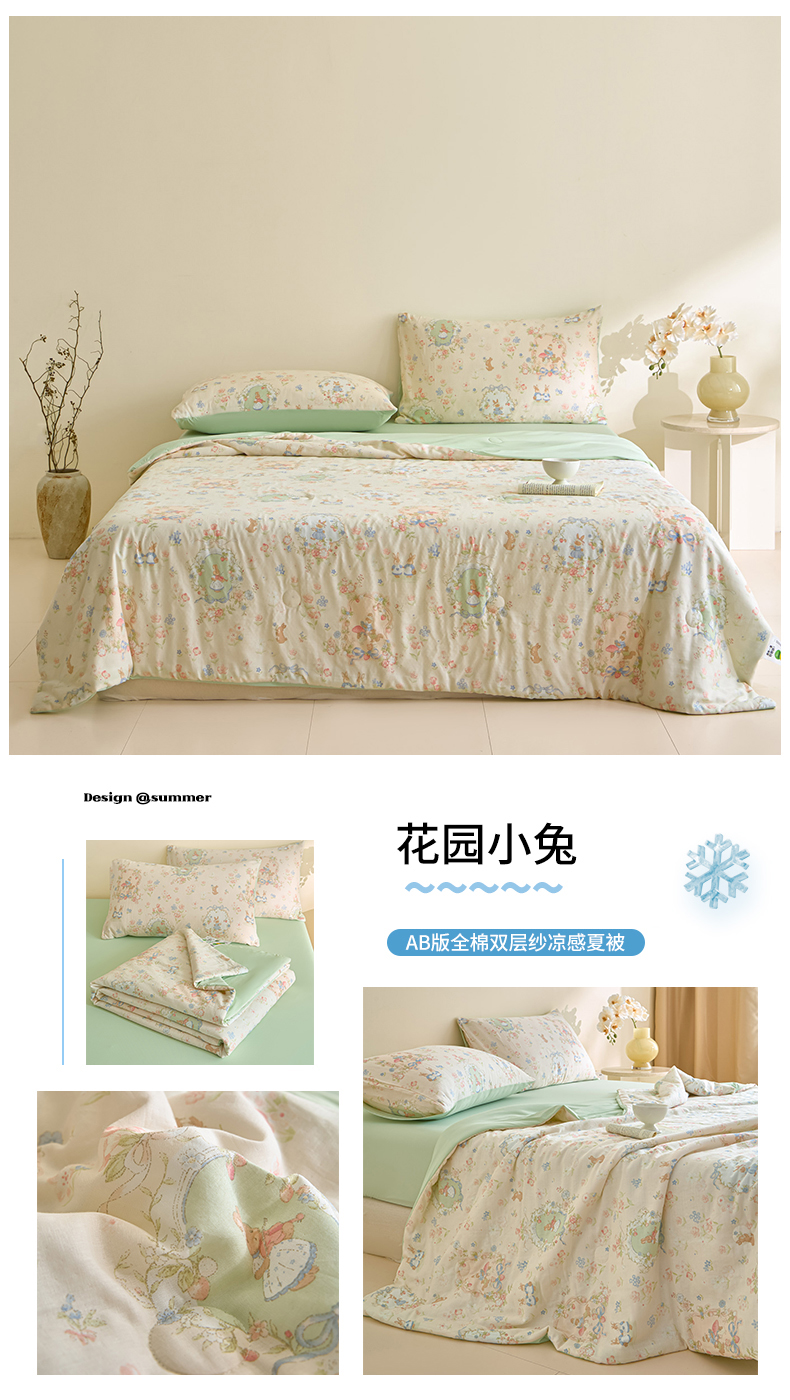 (总)宜代光年 2026春夏新款全棉双层纱凉感夏被夏凉被空调被,海盐小熊,花园小兔,奶杏格调,晴空小兔,森系小熊-粉,森系小熊-绿,甜梦凯蒂,条纹小狗,樱桃粉象,紫雾蔷薇