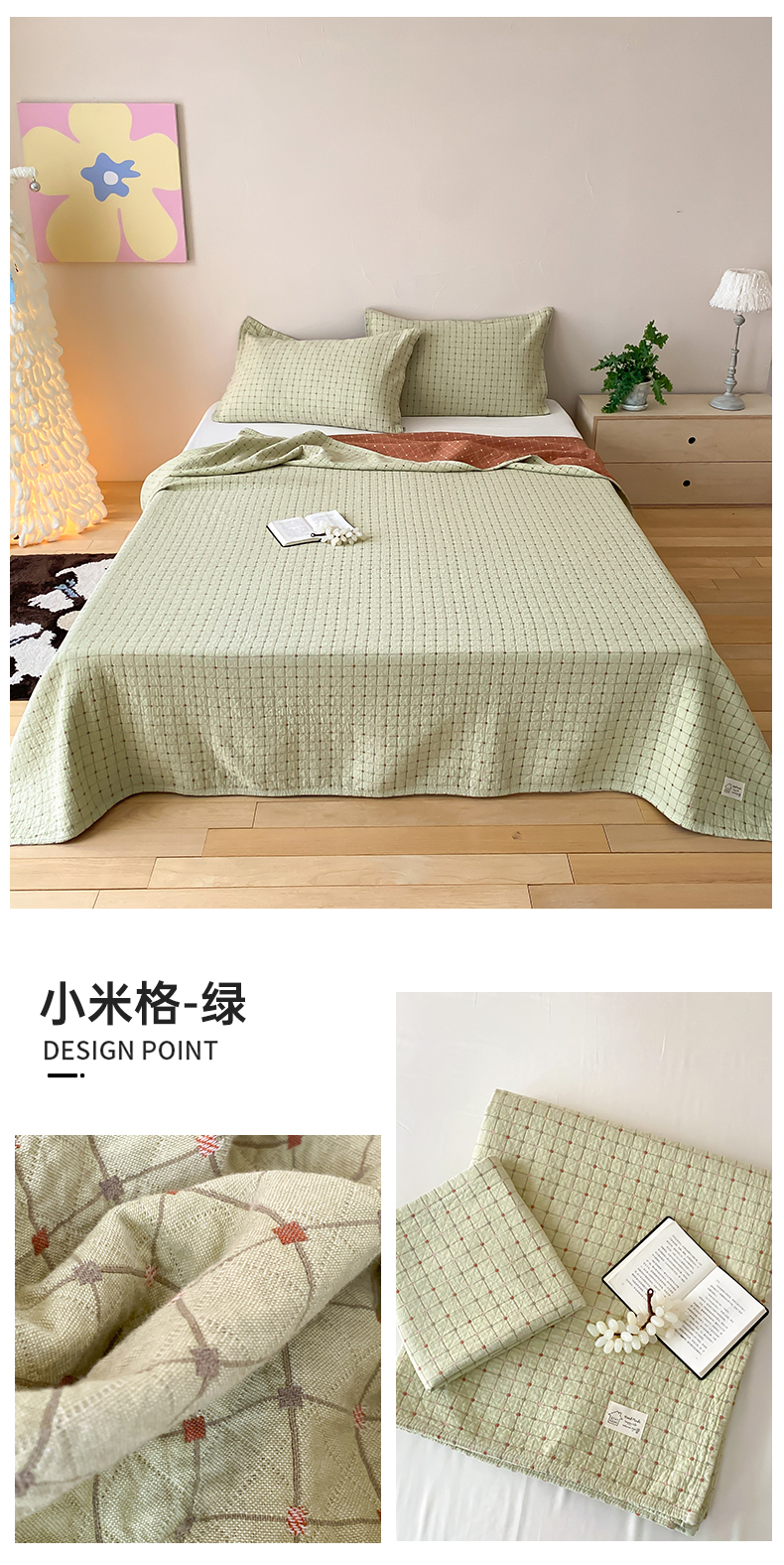 商品名称:麻依 2026新款安心棉床盖三件全棉四层纱布床单 清檬