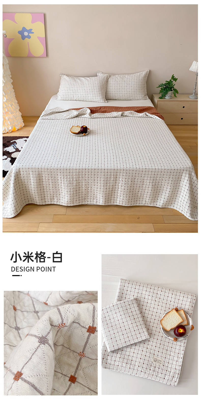 商品名称:麻依 2026新款安心棉床盖三件全棉四层纱布床单 小米格-绿