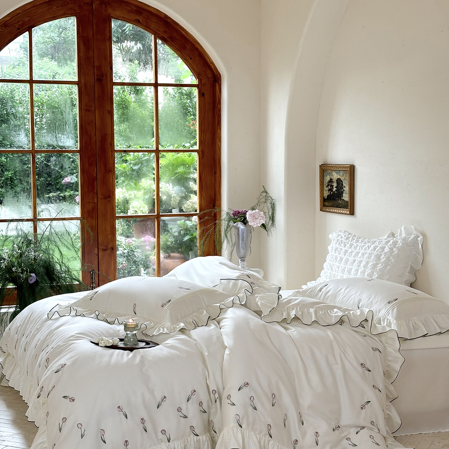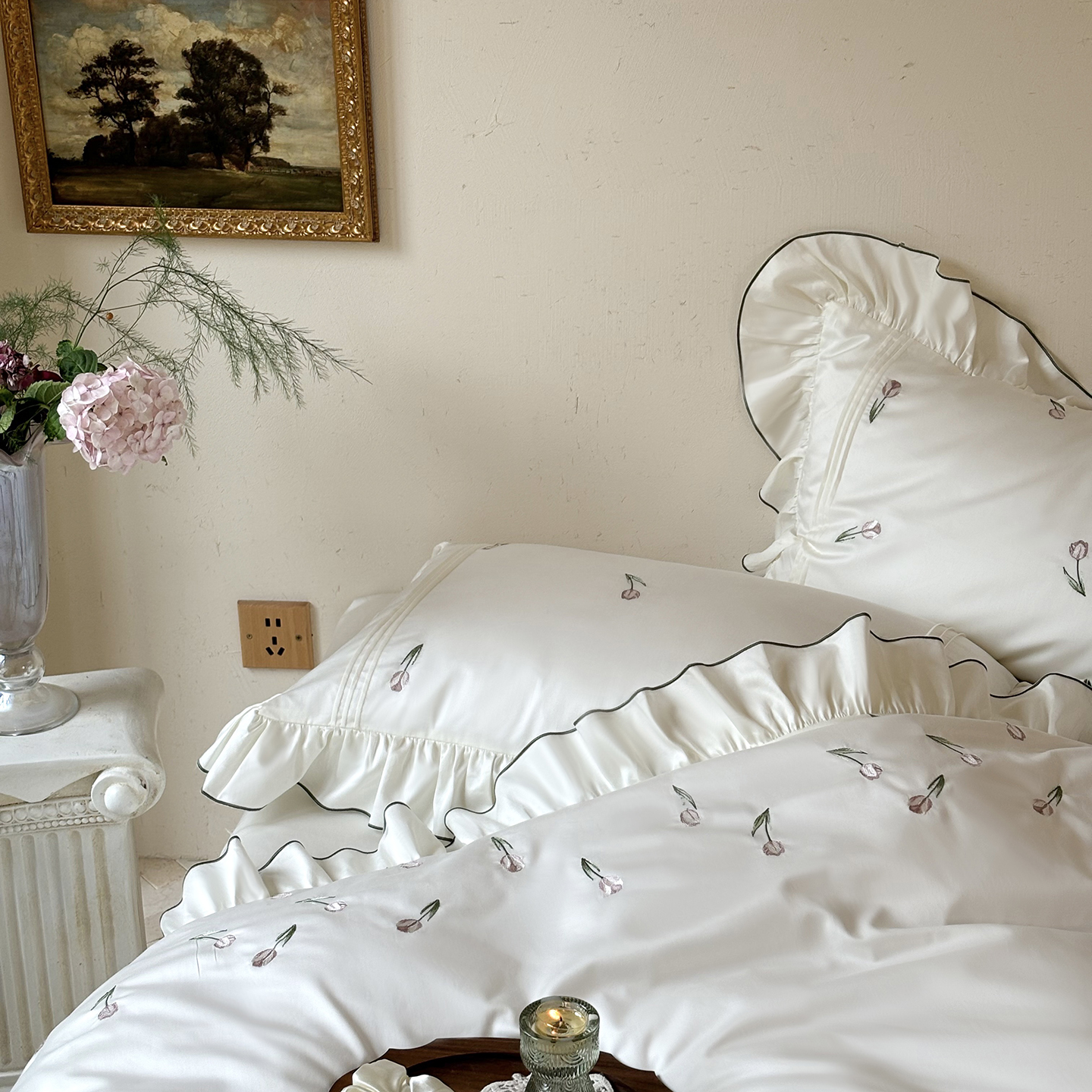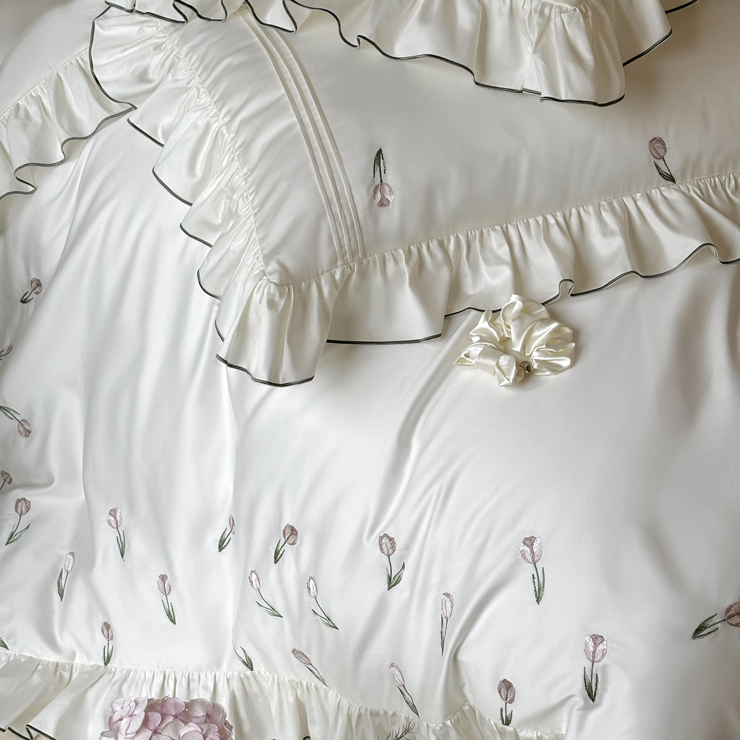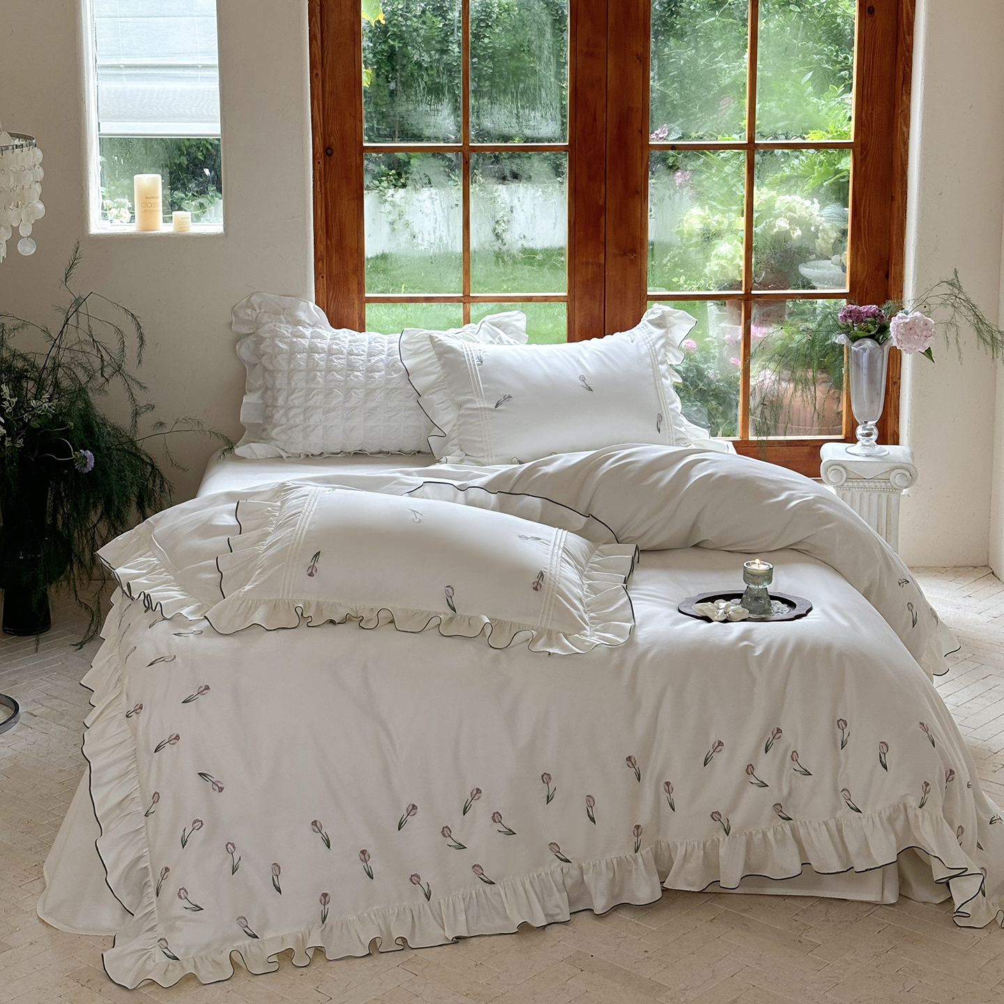 (总)佳汐蓝家纺 2026新款50S全棉纯棉轻奢工艺款精致刺绣四件套-幸运草系列,幸运草-浅水蓝,幸运草-云母白