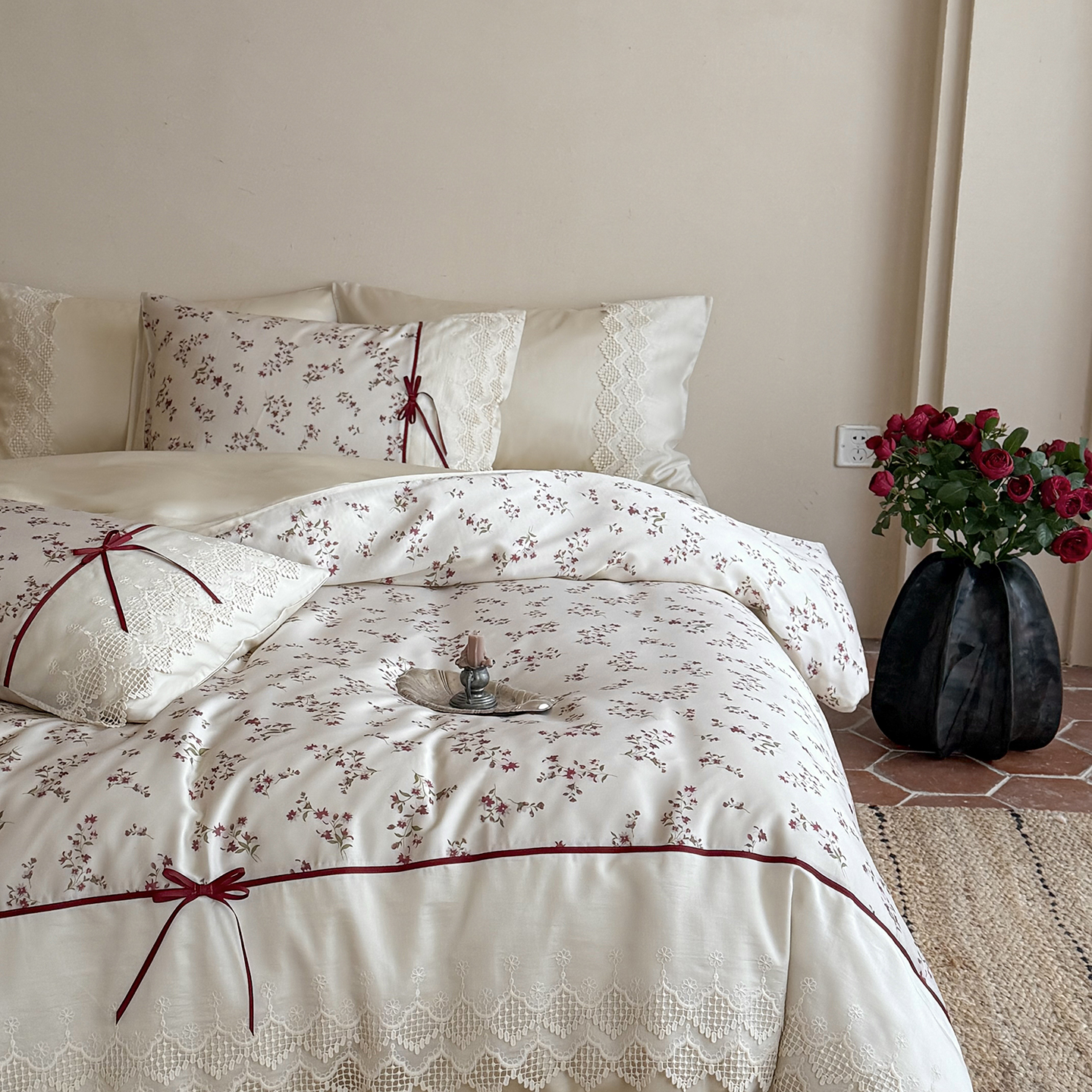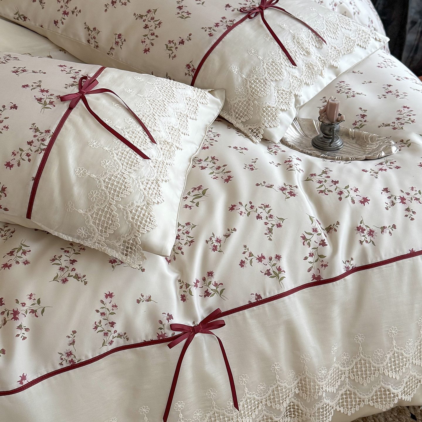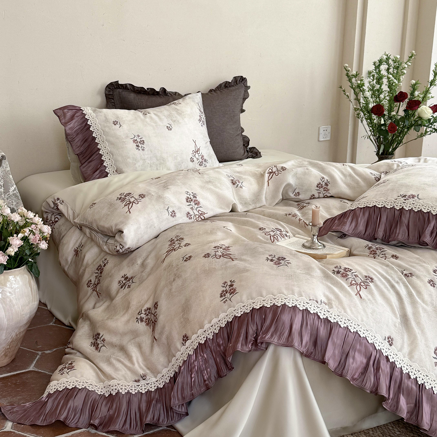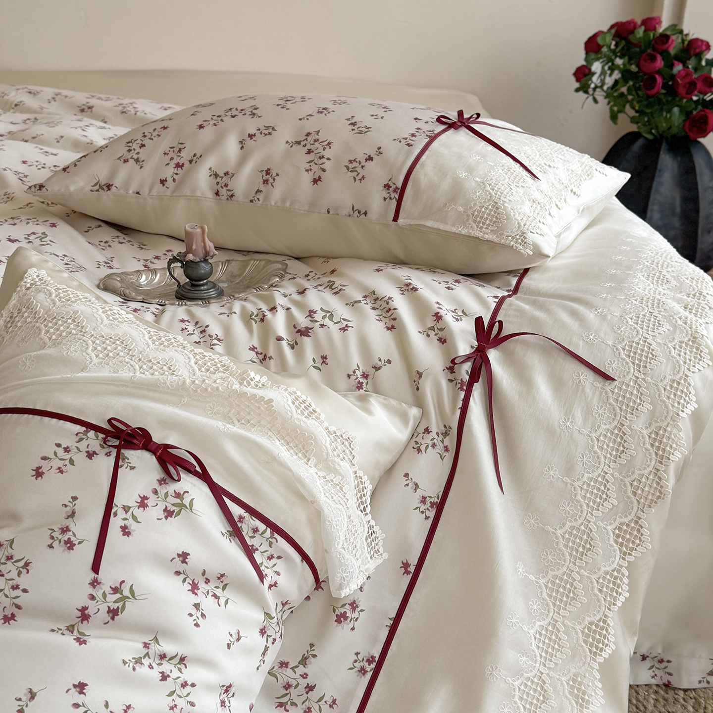 (总)佳汐蓝家纺 2026新款高精密缎面蕾丝贴布绣法式浪漫邂逅中式喜庆四件套,爱玛诗,诺言,情意浓浓,唯美