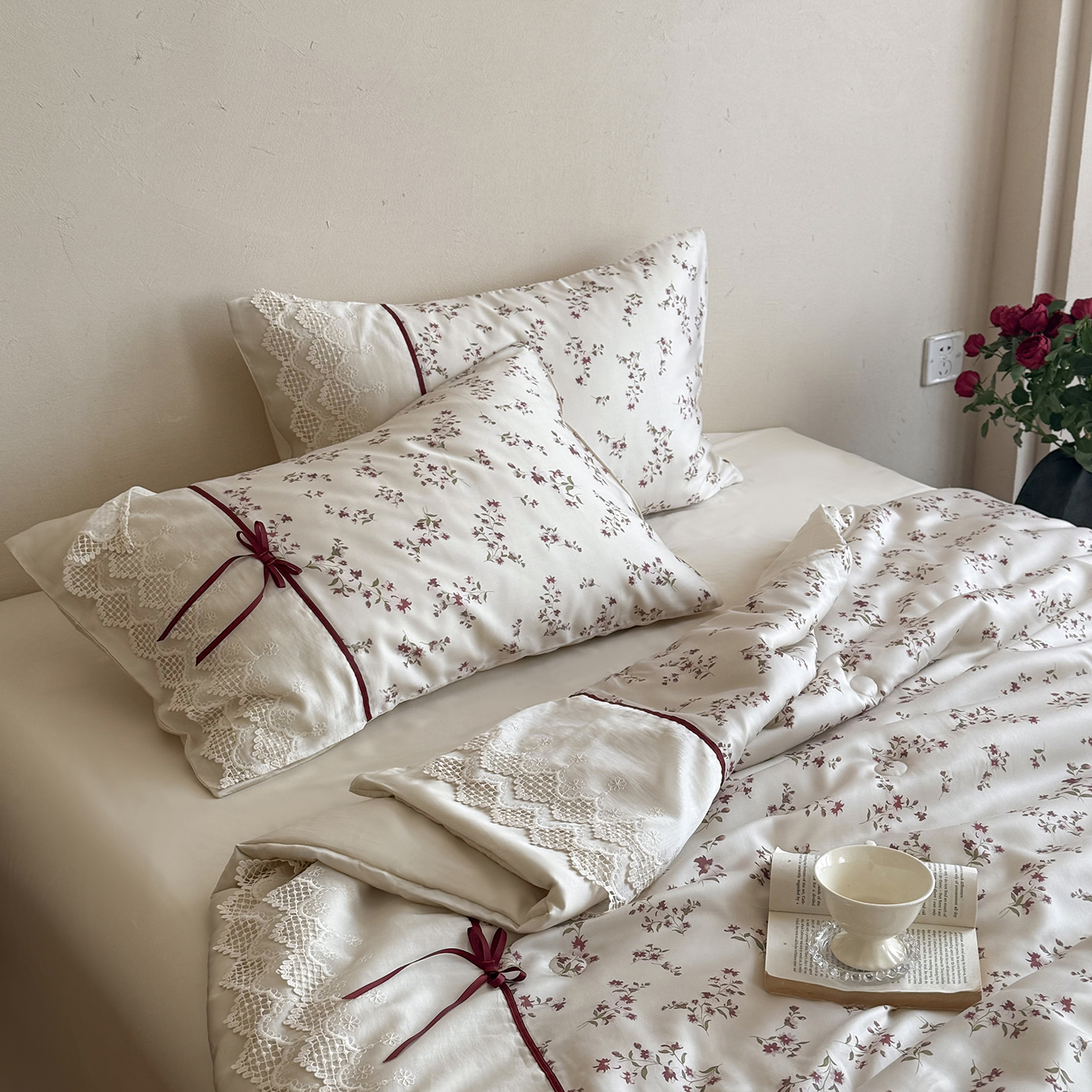 (总)佳汐蓝家纺 2026新款高精密缎面蕾丝贴布绣法式浪漫邂逅中式喜庆四件套,爱玛诗,诺言,情意浓浓,唯美