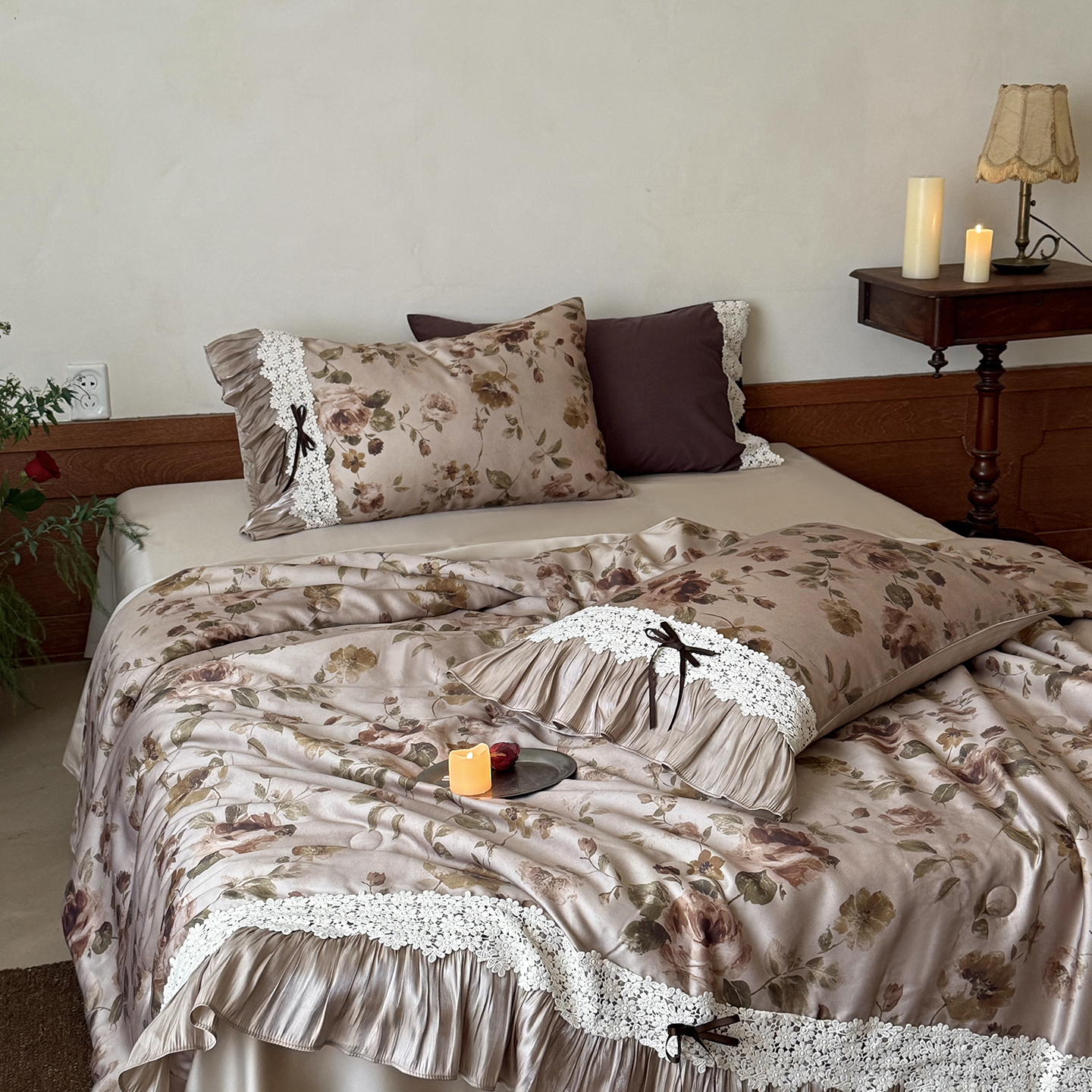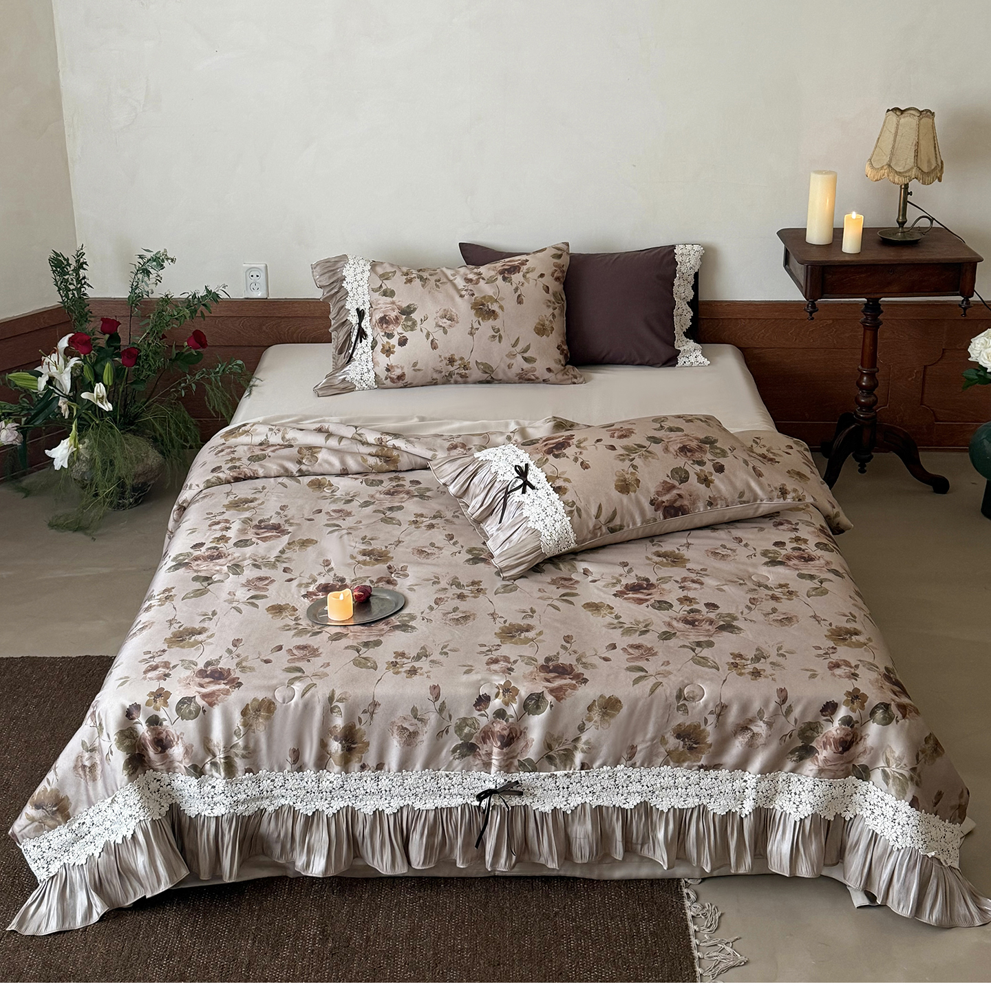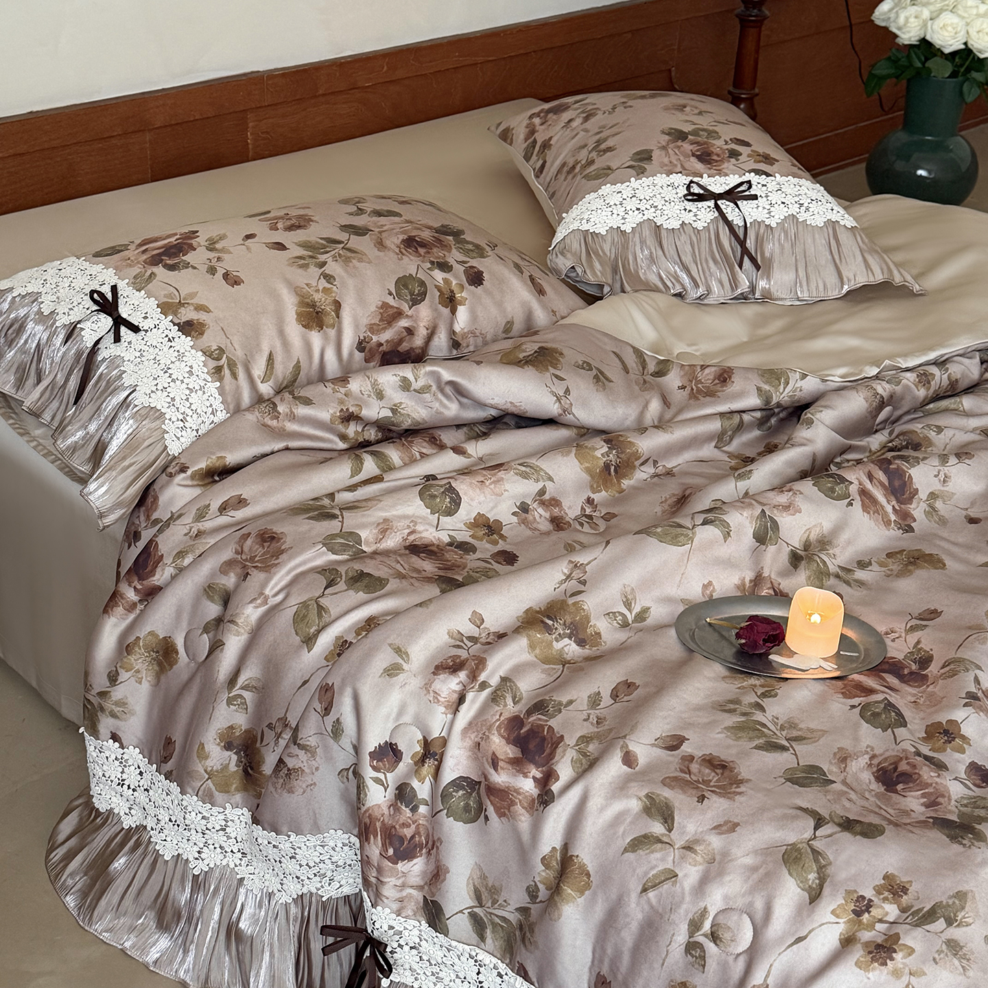(总)佳汐蓝家纺 2026新款春夏100支全棉复古风数码印花四件套--罗曼花园,罗曼花园