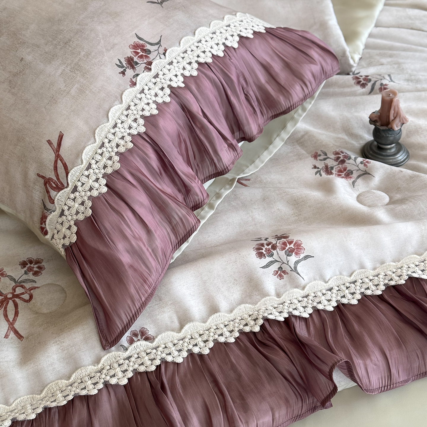 (总)佳汐蓝家纺 2026新款春夏棉麻新品印花+流光纱四件套-春缇玫瑰,春缇玫瑰