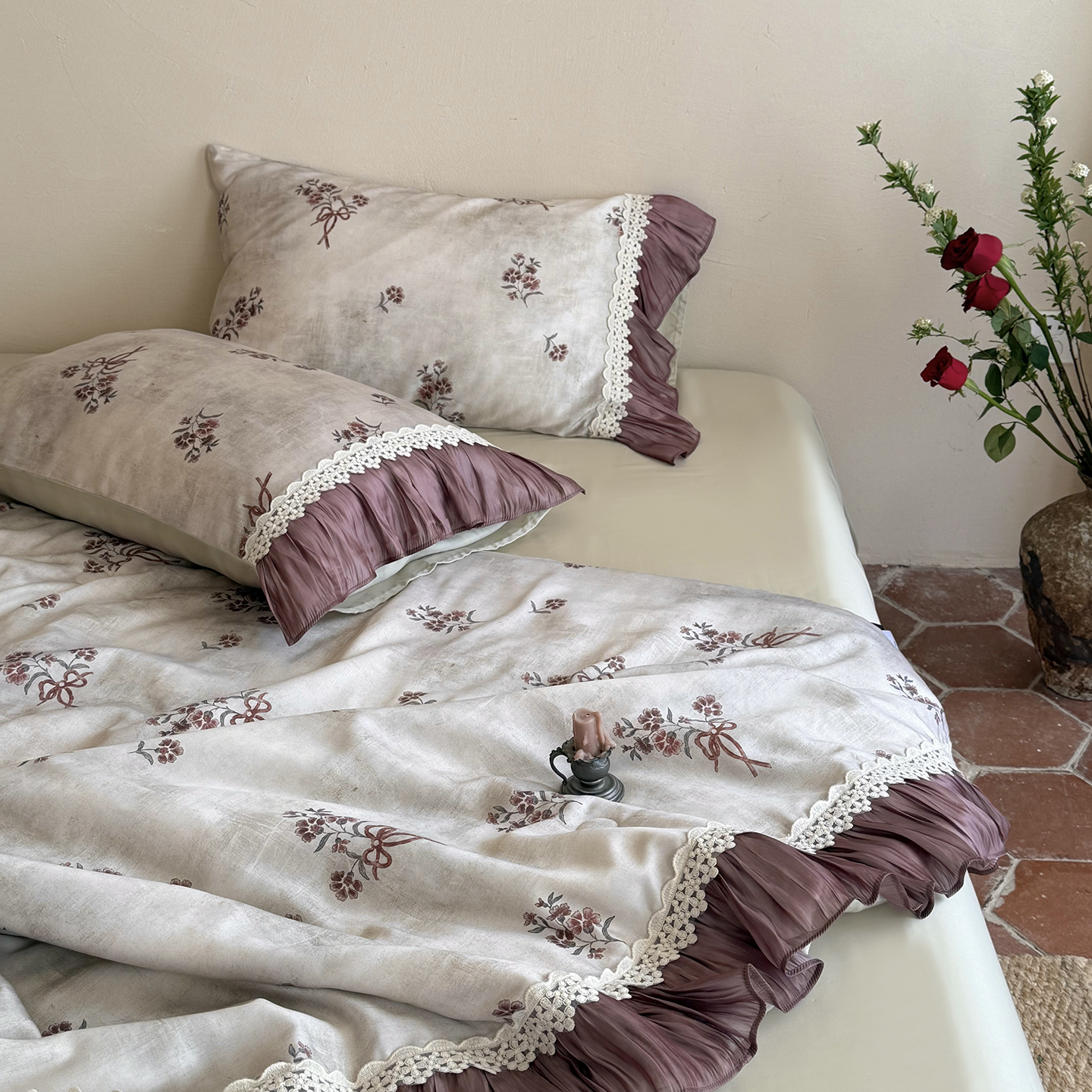 (总)佳汐蓝家纺 2026新款复古棉麻印花四件套-半亩花田,半亩花田