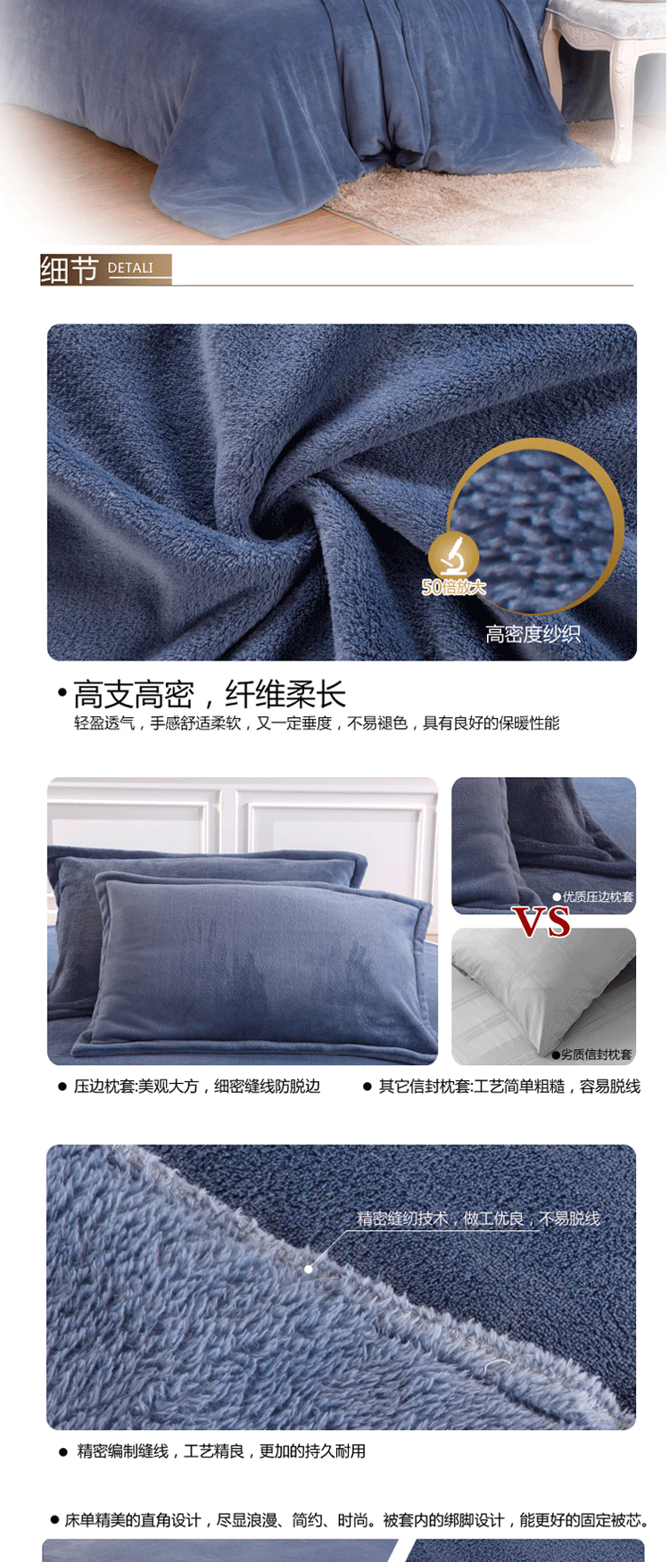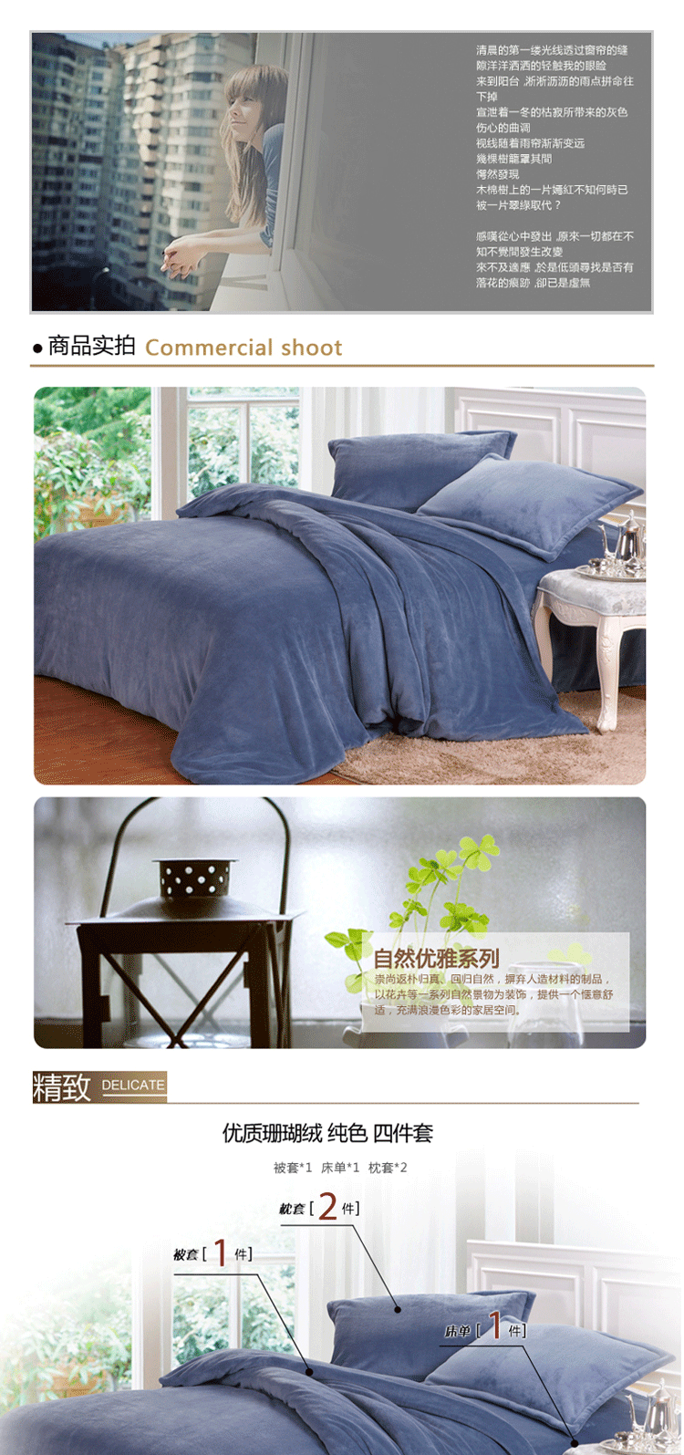 商品名称:情恒家纺 自然优雅素色珊瑚绒纯色四件套 银灰色