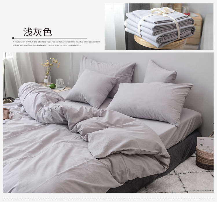 商品名称:柠萌家居 全棉色织水洗棉三件套四件套床笠款床单款 浅灰色